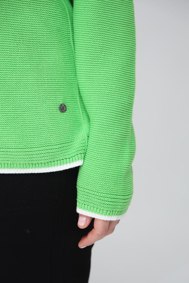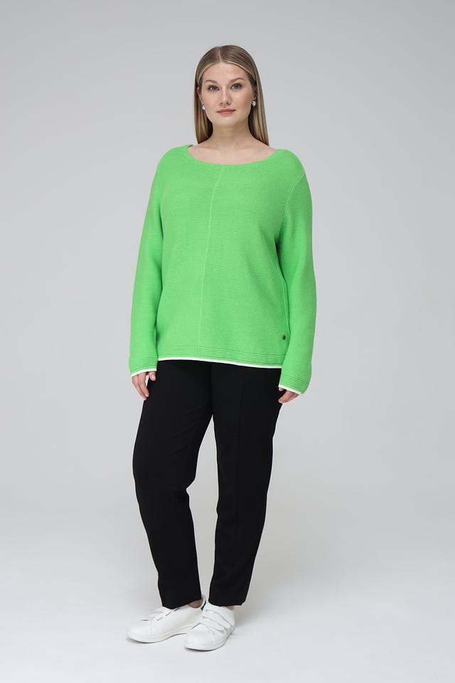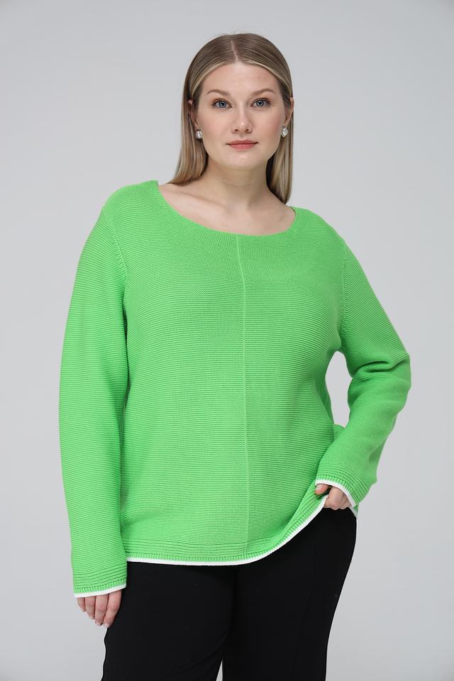Женский пуловер Frapp лаймового цвета с округлым вырезом и белой отделкой по горловине и низу. Изготовлен из мягкого хлопка, обеспечивающего комфорт в носке. Стильный и удобный выбор для повседневного гардероба. Состав: хлопок 100%