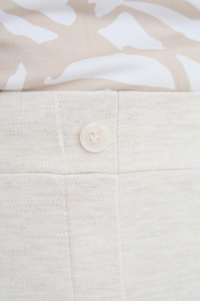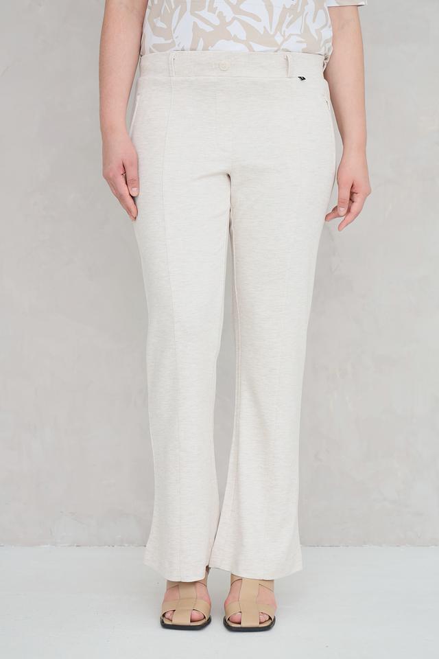 Представляем элегантные брюки от бренда Frapp. Эта модель выполнена в нежном бежевом цвете и имеет клёш от колена, что придает образу женственность и легкость.