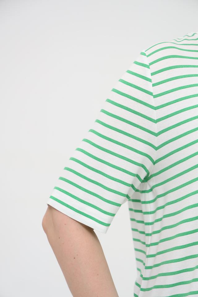 Эта стильная футболка от Frapp станет отличным дополнением к вашему гардеробу. Модель выполнена в классическом полосатом дизайне, сочетающем в себе белый и зеленый цвета.