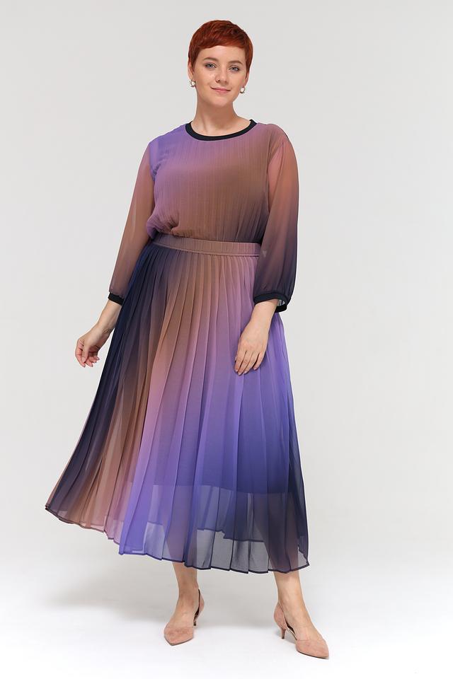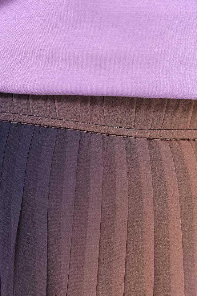 Юбка Frapp выполнена в технике плиссе с градиентным переходом цвета от коричневого к фиолетовому. Модель из 100% полиэстера обеспечит комфорт и лёгкость в носке. Состав: полиэстер 100%