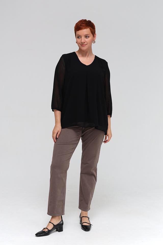 Чёрная блуза Frapp с рукавами-фонариками – элегантный выбор для создания женственного образа. Модель выполнена из лёгкой, полупрозрачной ткани и имеет V-образный вырез горловины. Состав: полиэстер 100%