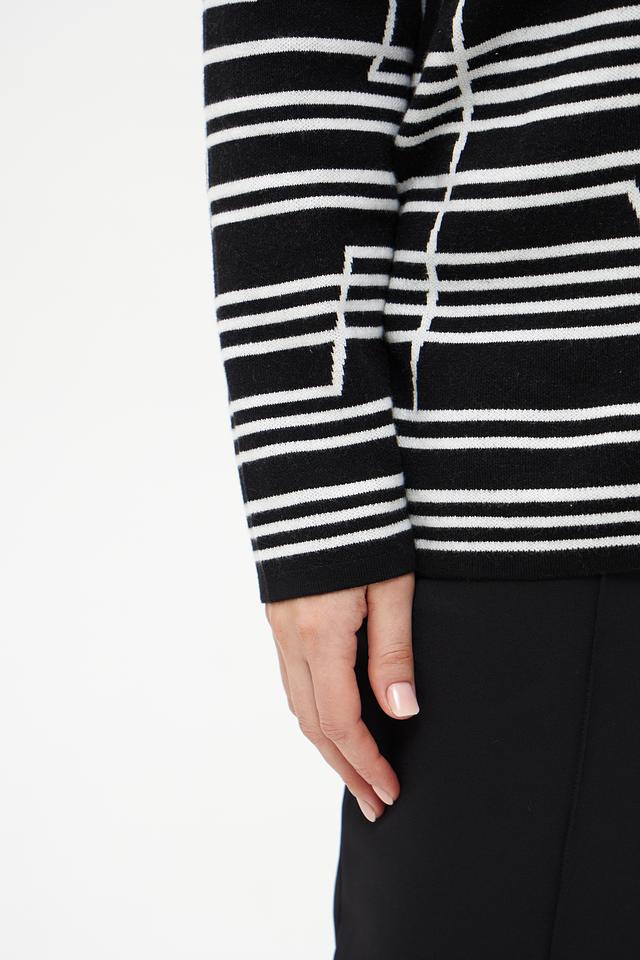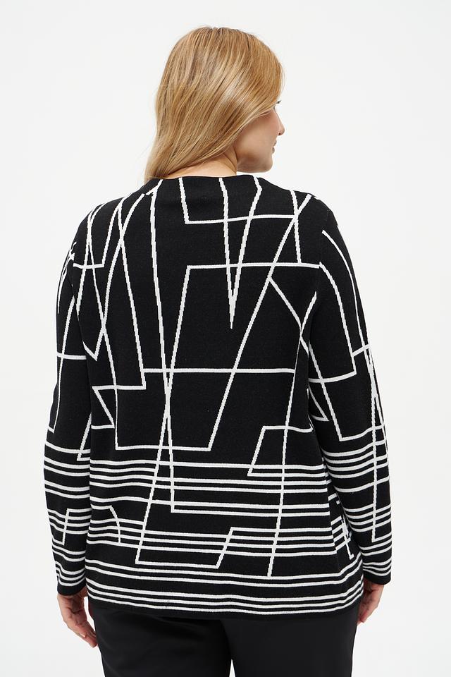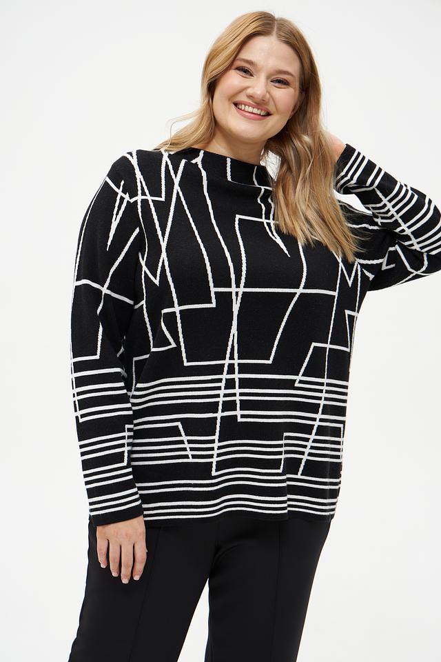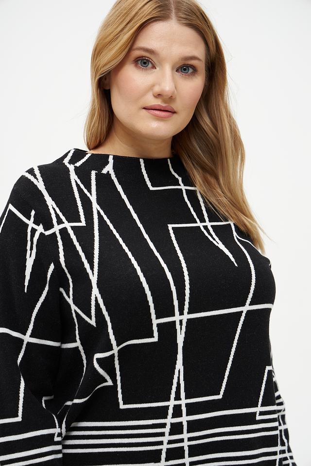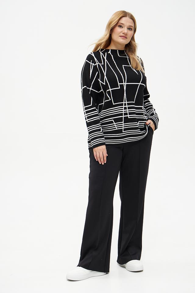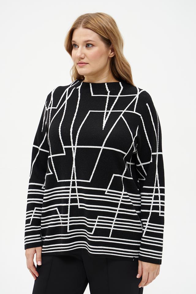 Женский пуловер Frapp чёрного цвета с оригинальным геометрическим рисунком станет стильным дополнением к вашему гардеробу. Модель выполнена из мягкого и приятного к телу сочетания хлопка и вискозы, обеспечивая комфорт в носке. Состав: хлопок 60%, вискоза 40%