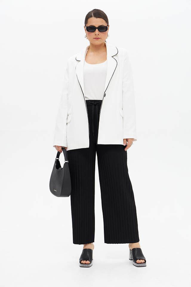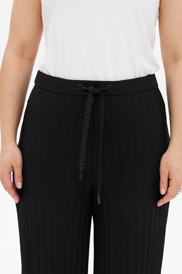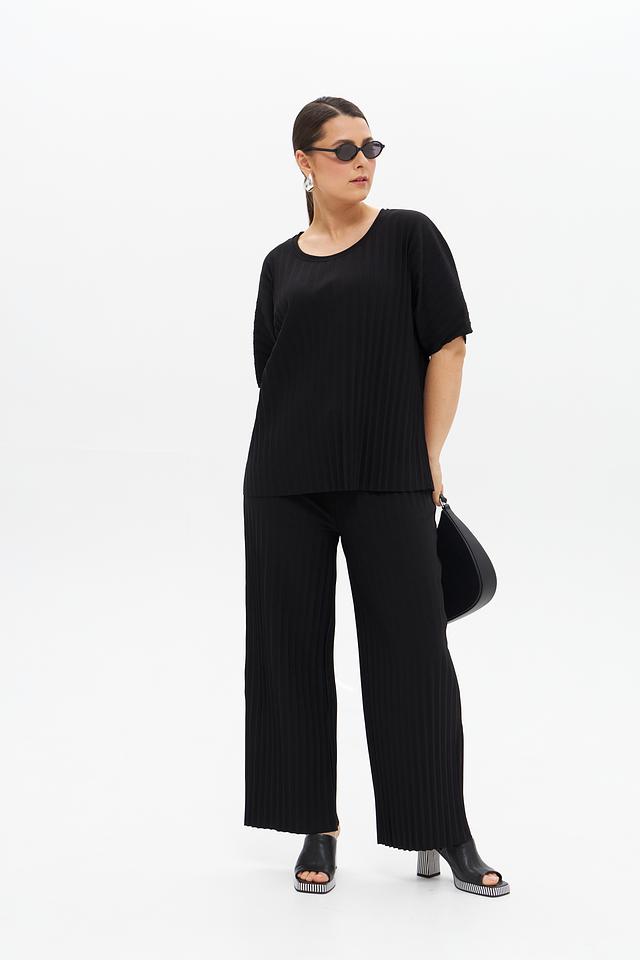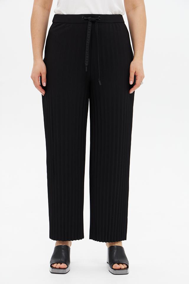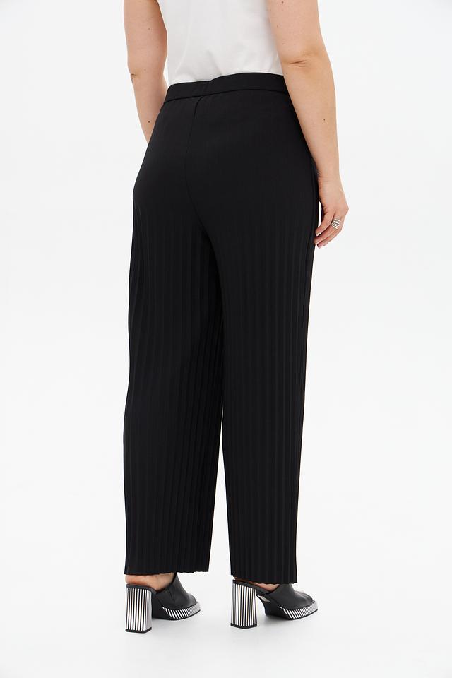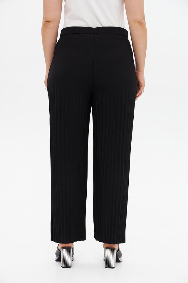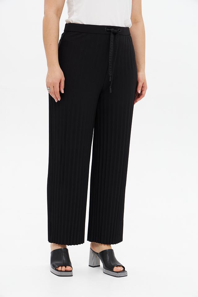 Брюки выполнены из высококачественного полиэстера с добавлением эластана, что обеспечивает комфорт в носке и хорошую посадку по фигуре. Плиссированная фактура придает модели особый шарм и элегантность.