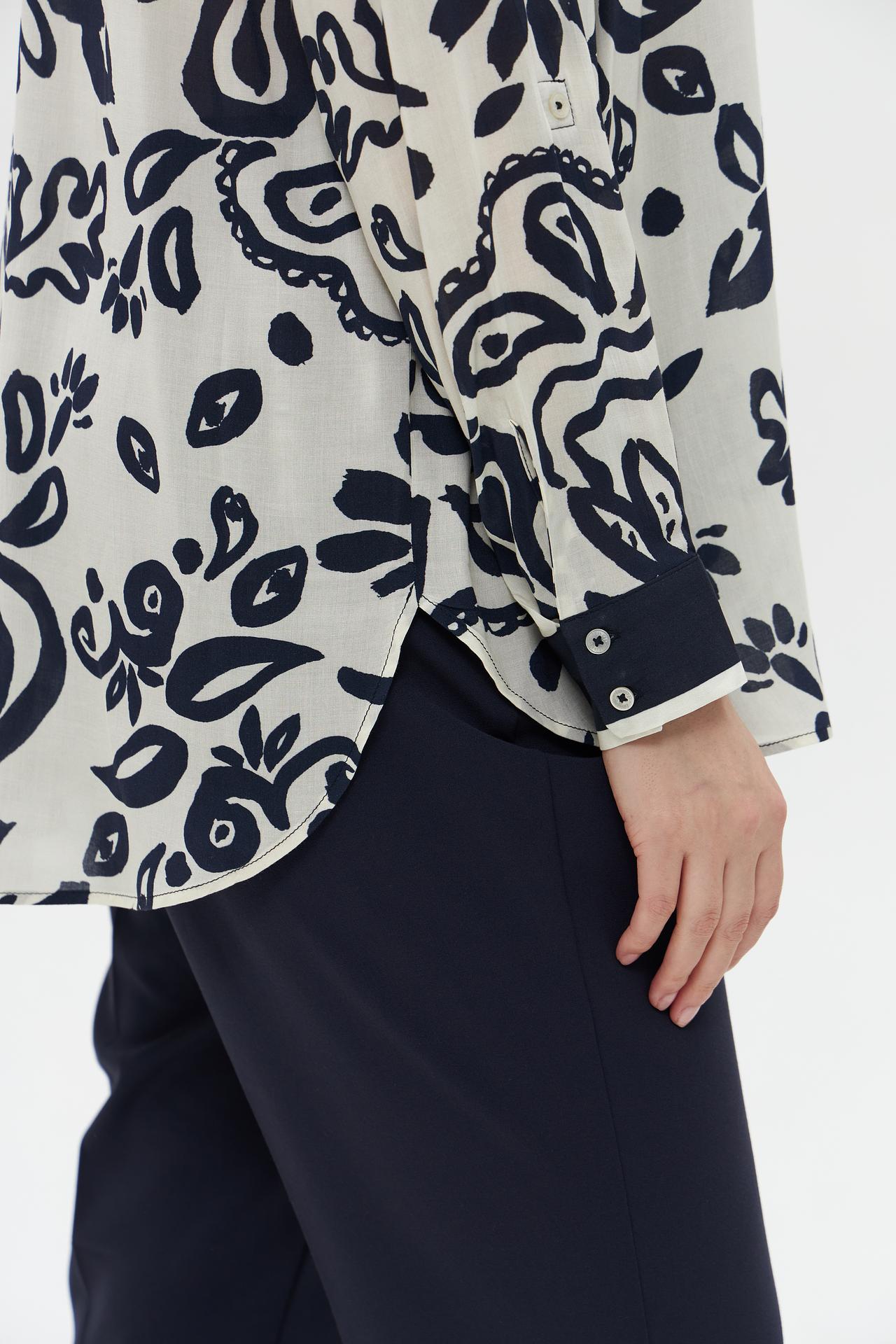 - Оригинальный принт – Элегантный принт добавляет образу изысканности и делает блузу запоминающейся.