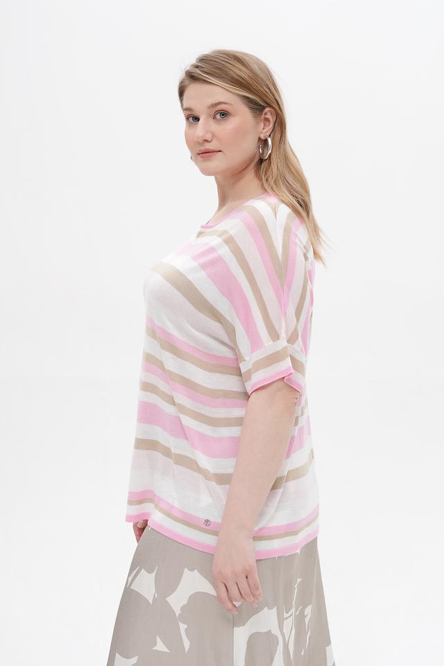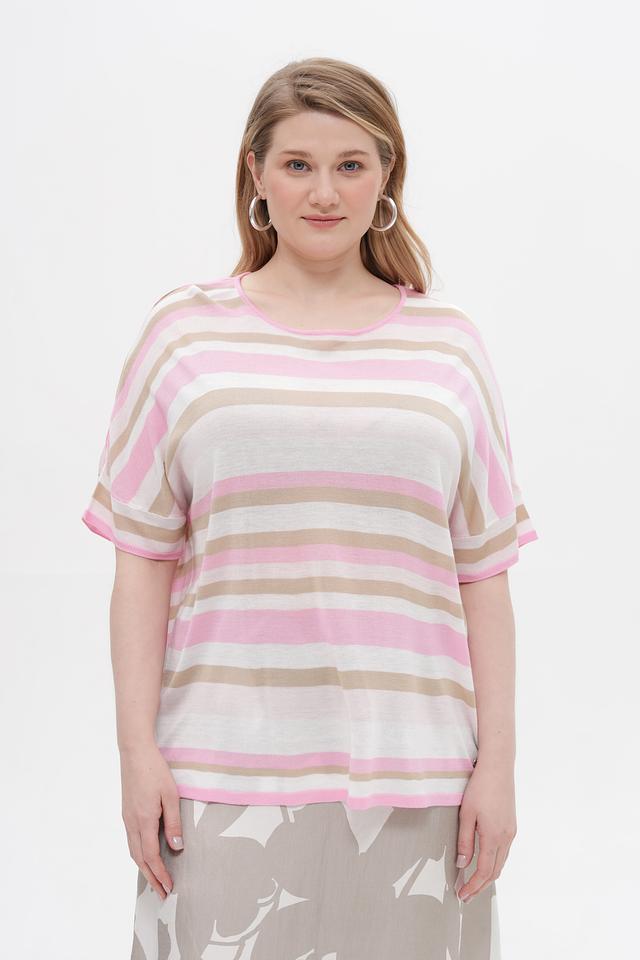 Женский пуловер Frapp нежно-розового и бежевого цвета с короткими рукавами. Изготовлен из мягкой вискозы и полиакрила, обеспечивающих комфорт и удобство в носке. Состав: вискоза 50%, полиакрил 50%