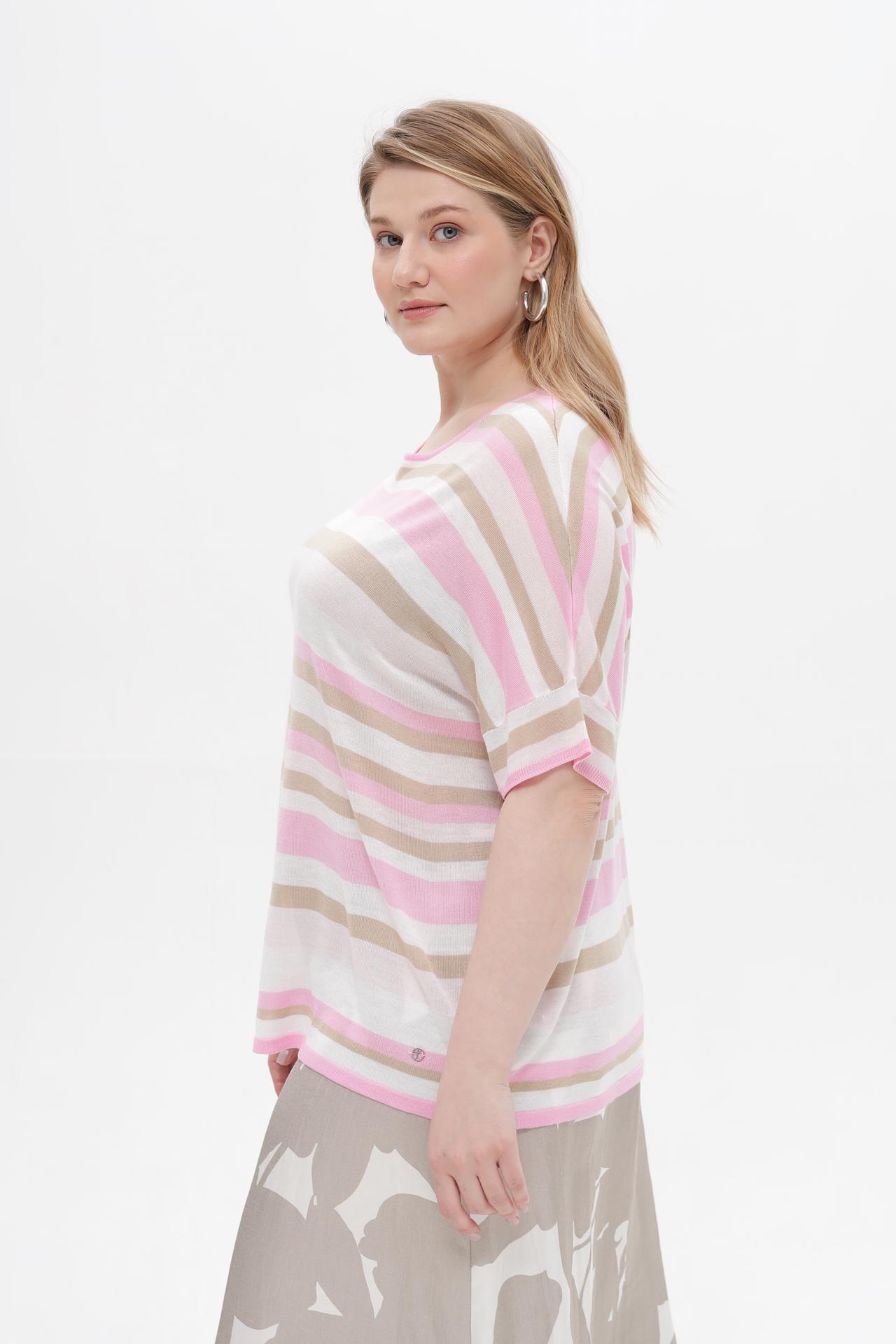 - Универсальный дизайн: Полосатый принт позволяет легко сочетать пуловер с различными элементами гардероба.