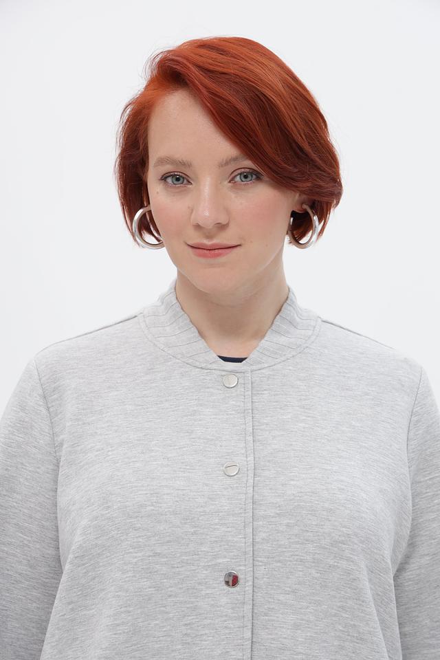 Серый жакет Frapp – это стильное и удобное решение для создания многослойных образов. Выполнен из мягкого трикотажа с добавлением вискозы и эластана, имеет застежку на пуговицы и контрастные полоски на рукавах. Состав: полиэстер 50%, вискоза 44%, эластан 6%