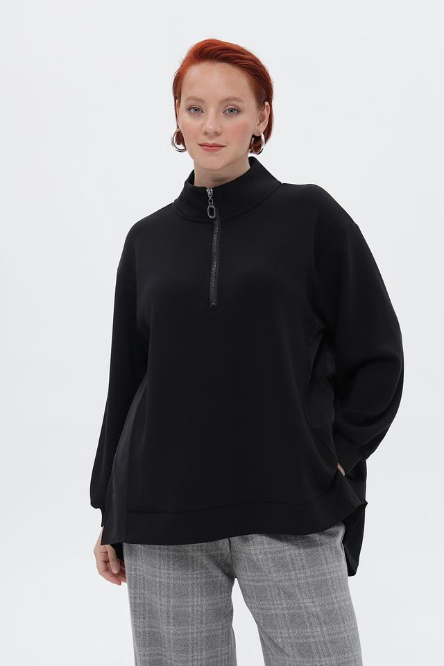 Эта стильная блузка от Frapp выполнена в классическом черном цвете и имеет удобную молнию до груди, что позволяет регулировать степень открытости. Изделие обладает свободным кроем, который обеспечивает комфорт в носке, но при этом подчеркивает фигуру.