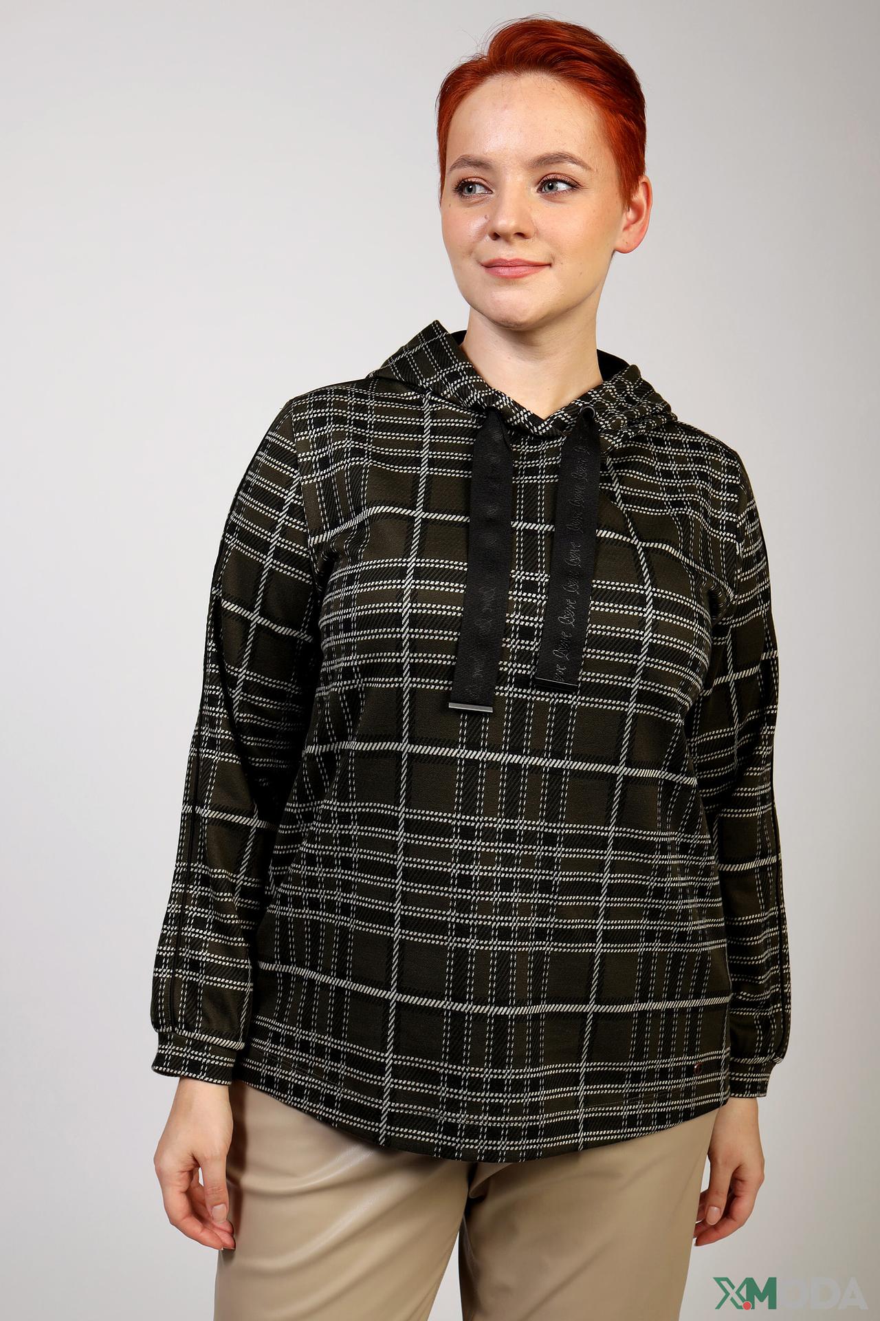 - Актуальный принт в клетку. Классический клетчатый узор в темно-зеленых и черных тонах с белыми акцентами делает этот пуловер универсальным элементом для создания разнообразных стильных образов.