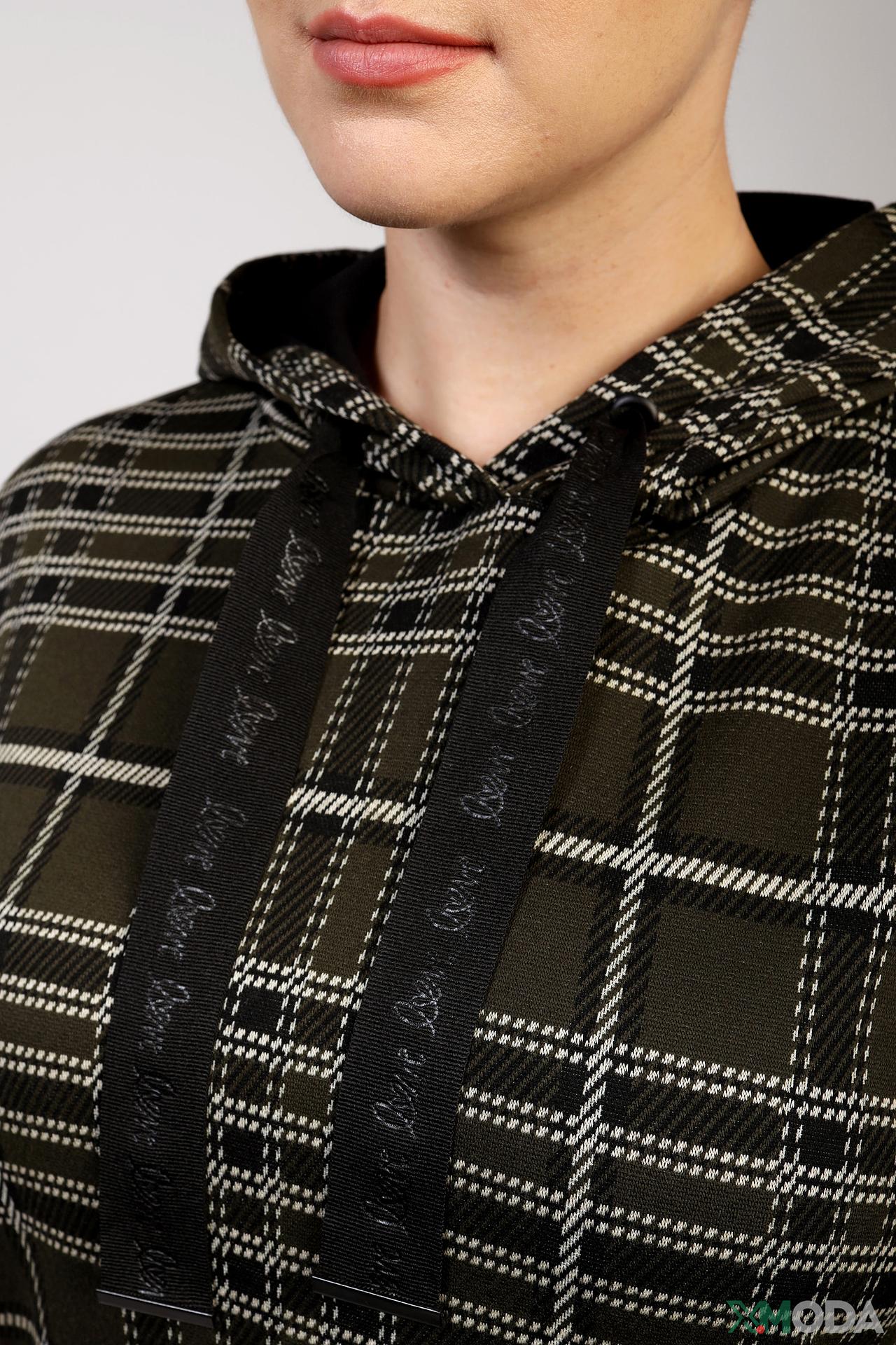 Пуловер Frapp в клетку с капюшоном и декоративными шнурками