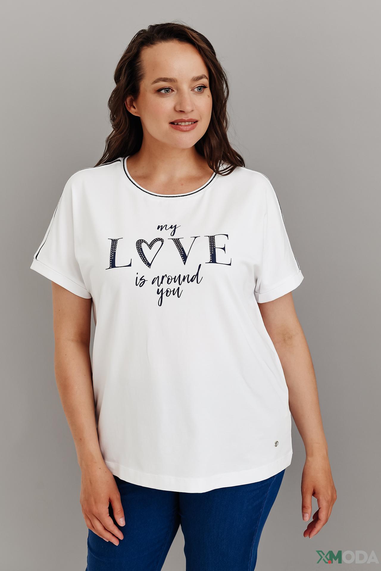 Футболка дополнена оригинальным принтом и отделкой, что придает ей особый шарм и индивидуальность. Отличный вариант для тех, кто ценит удобство и стиль в одежде. Пополните свой гардероб этой универсальной футболкой!