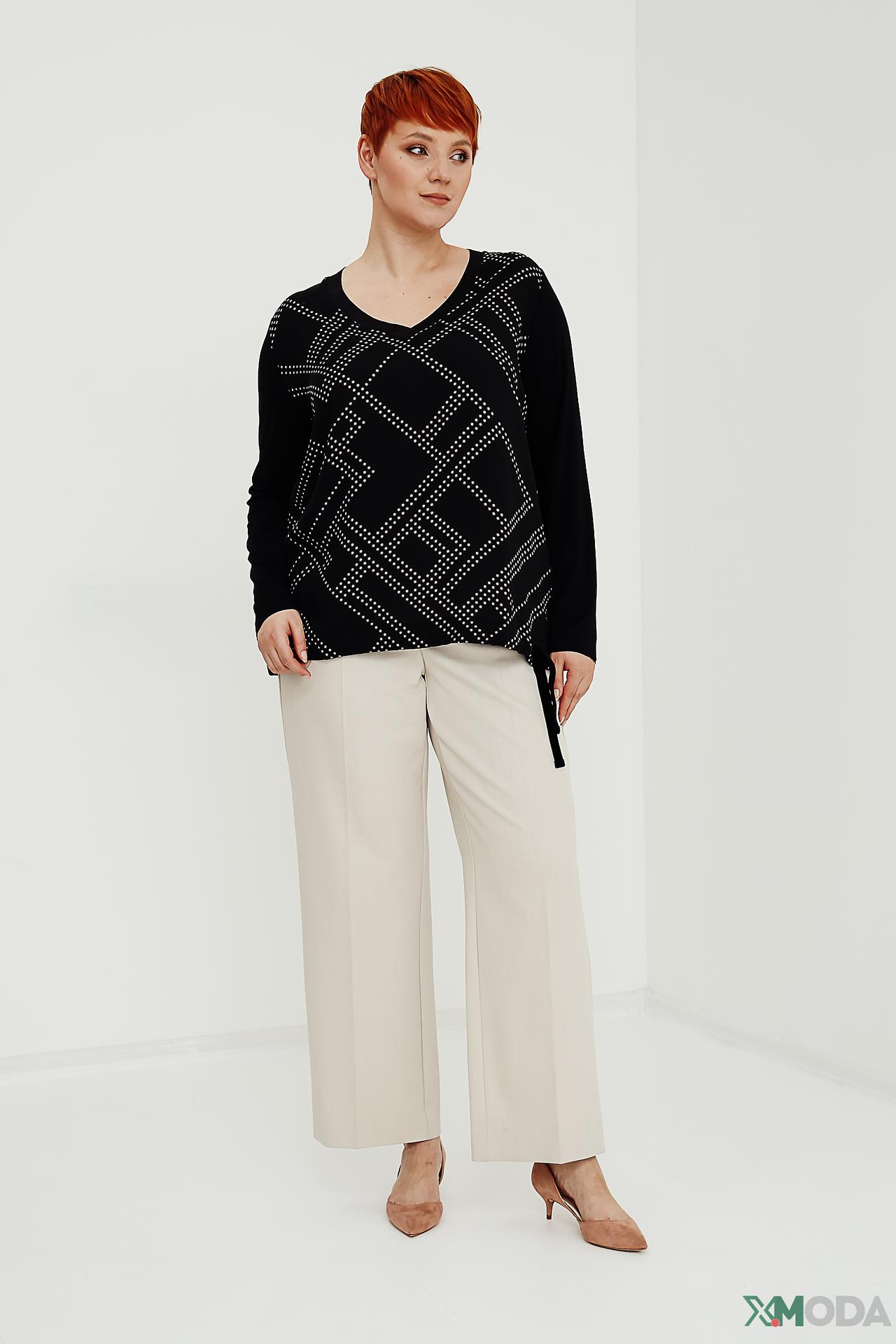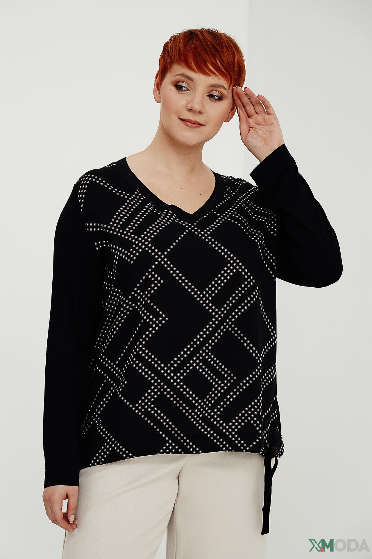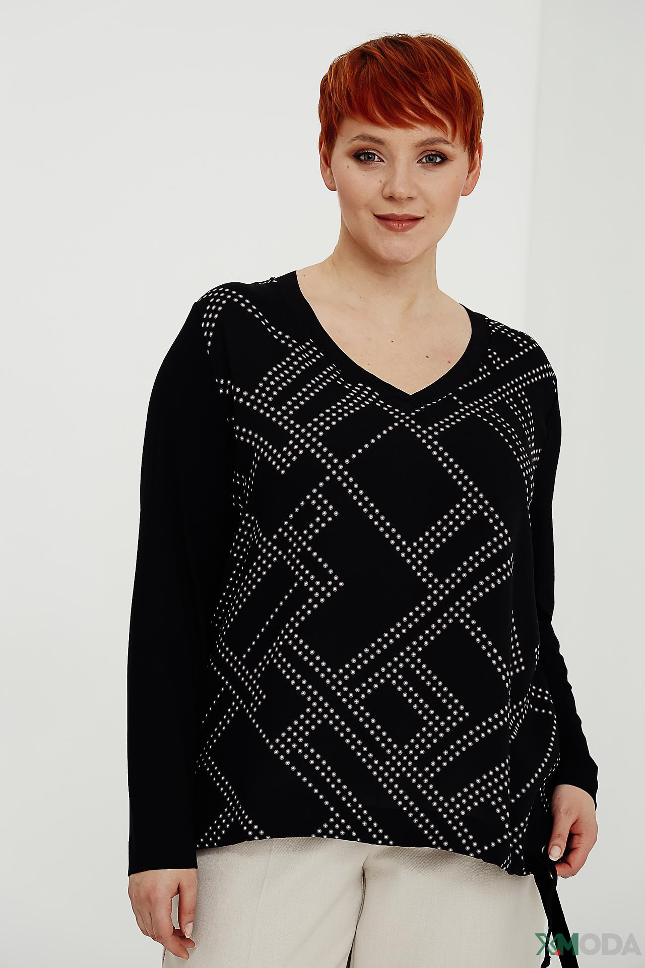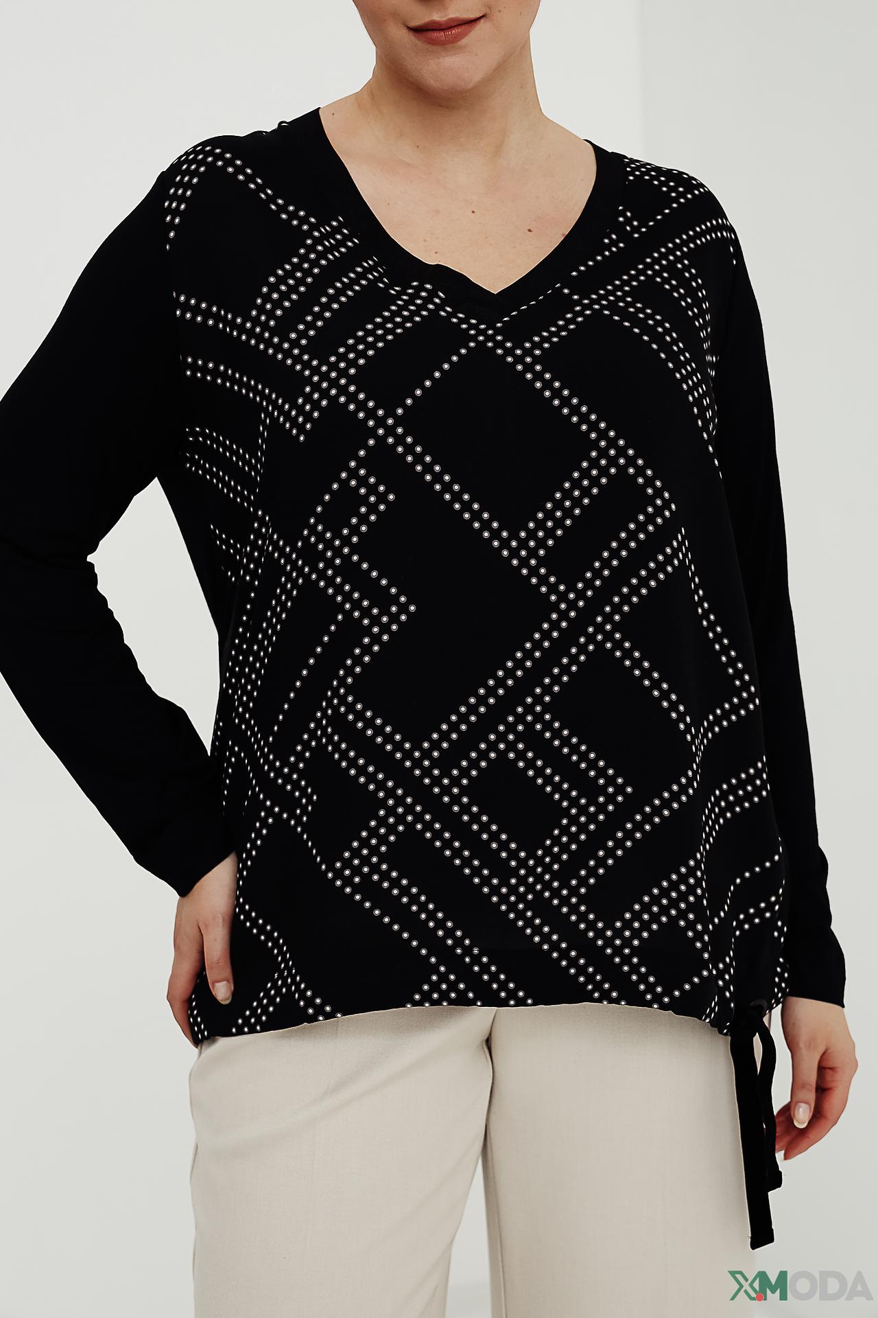 - Дизайн: Оригинальный принт в виде черной клетки с белыми точками на передней части блузы. Это стильное решение для создания эффектных образов.