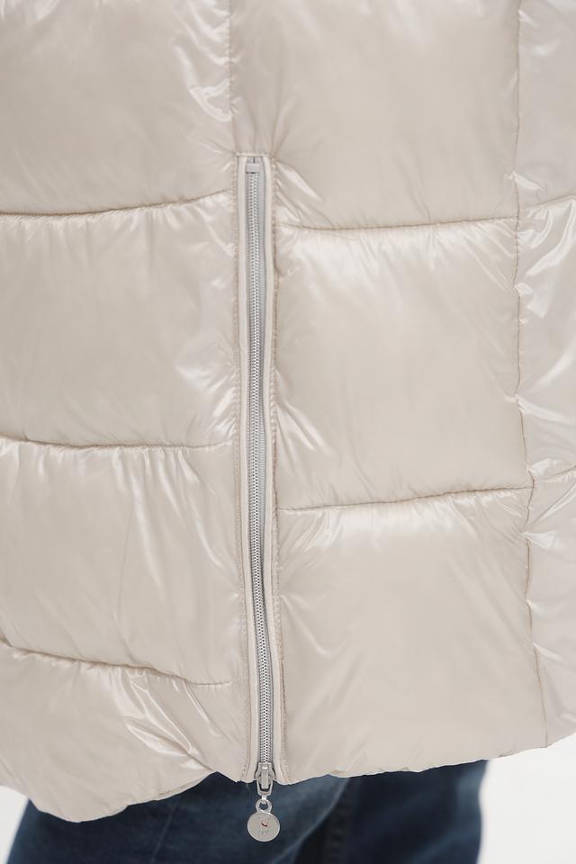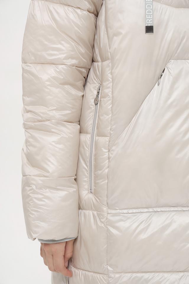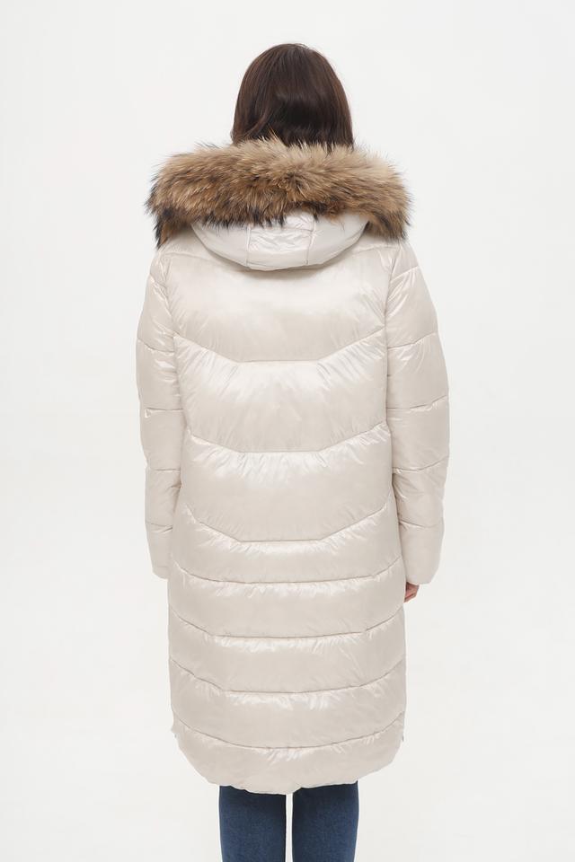 Модель имеет прямой крой, длину до середины и удобный капюшон, отделанный искусственным мехом.