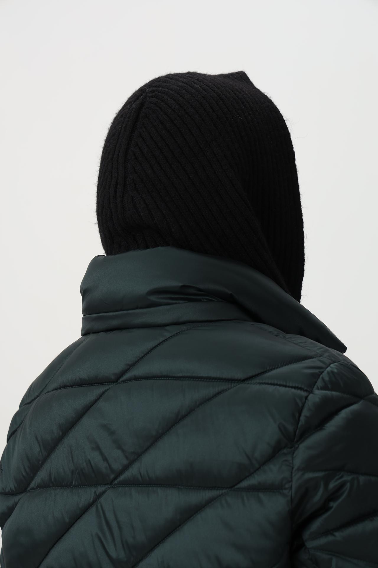 - Дизайн: Классический шарф в чёрном цвете с ребристой вязкой. Универсальная модель, подходящая как женщинам, так и мужчинам.
