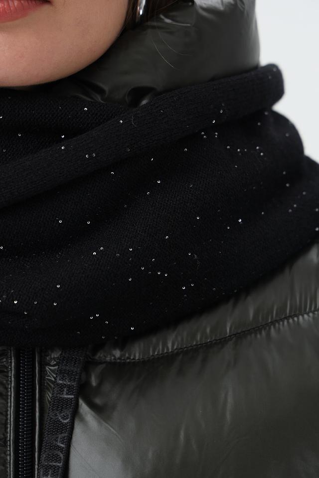 Этот элегантный шарф от Frieda and Freddies выполнен в классическом чёрном цвете и декорирован мерцающими пайетками, что придает ему особый шарм.