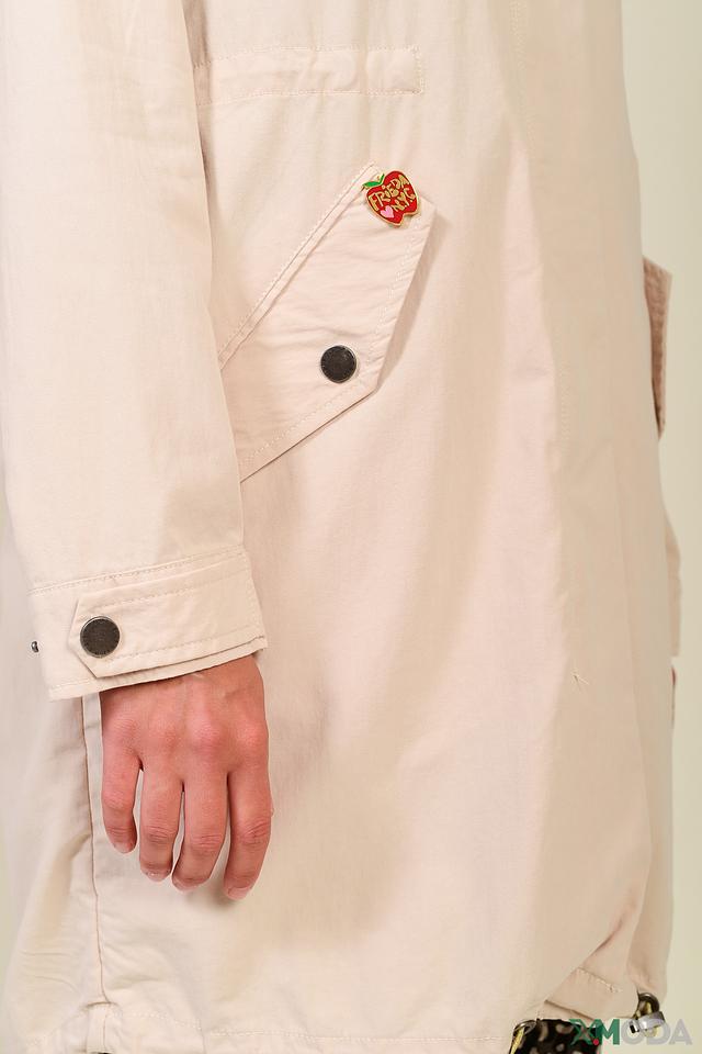 Куртка оснащена функциональными карманами для хранения мелочей. Декоративные элементы в виде вышитой клубнички добавляют образу игривости и индивидуальности. Подкладка выполнена из 100% нейлона, а наполнитель – из 100% полиэстера, обеспечивая тепло и лёгкость.