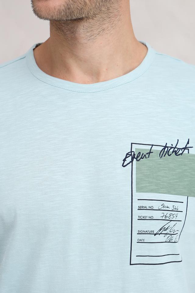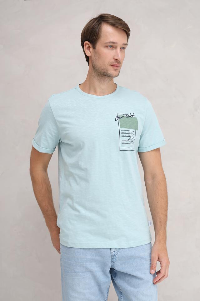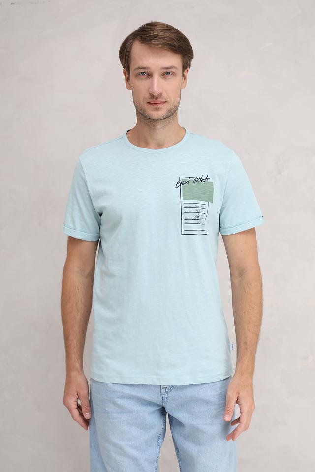 Мужская футболка Basefield мятного цвета с оригинальным принтом в виде билета. Изготовлена из 100% хлопка, обеспечивающего комфорт и воздухопроницаемость. Стильный и удобный вариант для повседневной носки. Состав: хлопок 100%