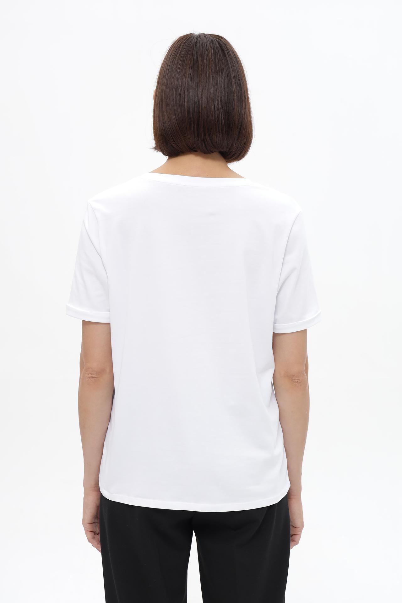 - Элегантный дизайн: Классический крой и универсальный белый цвет делают футболку подходящей для создания множества образов — от повседневных до более формальных.