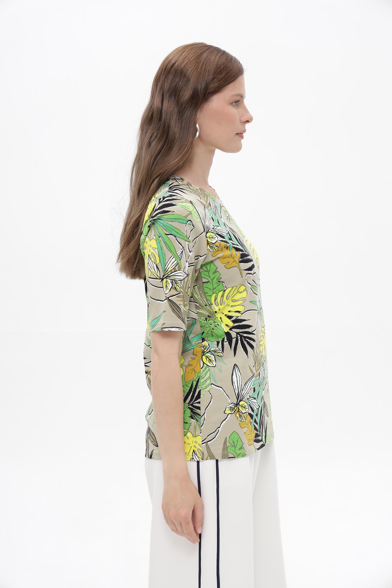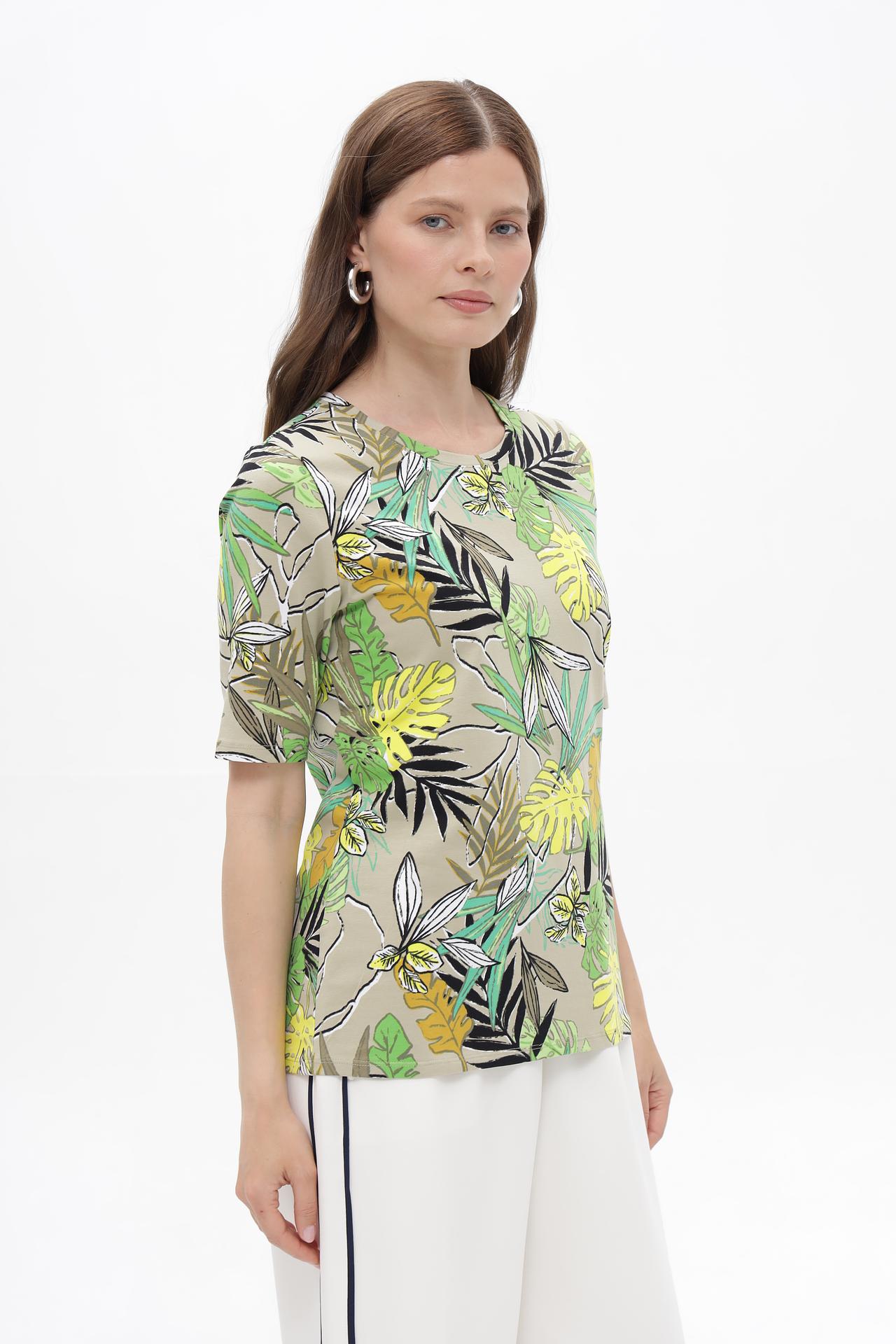Элегантная футболка Betty Barclay – идеальное дополнение к вашему повседневному гардеробу. Изготовленная из мягкого и приятного к телу трикотажа (95% хлопок, 5% эластан), она обеспечивает комфорт и свободу движений в течение всего дня. Классический крой и универсальный цвет хаки делают эту футболку прекрасной базой для создания разнообразных образов.