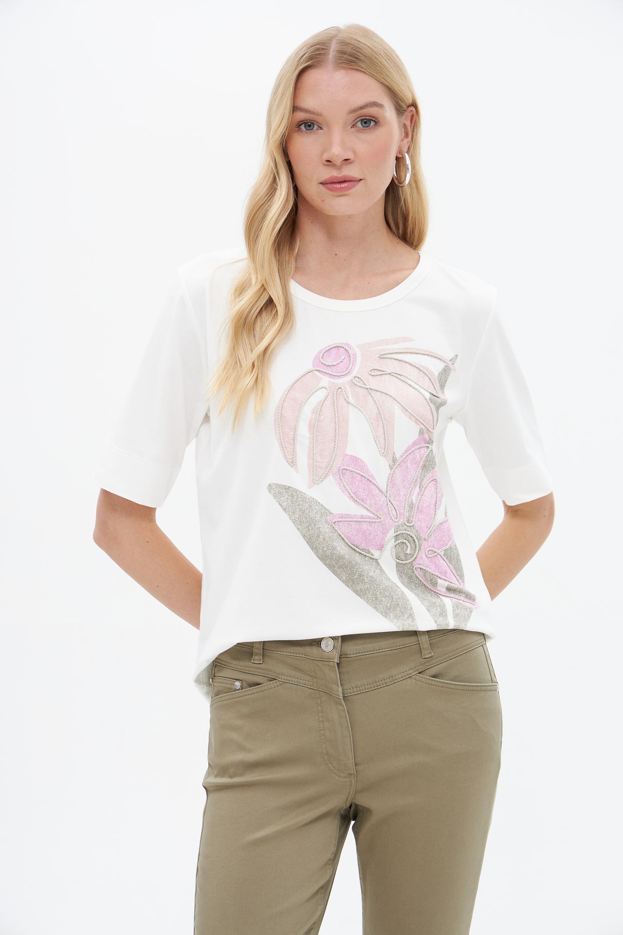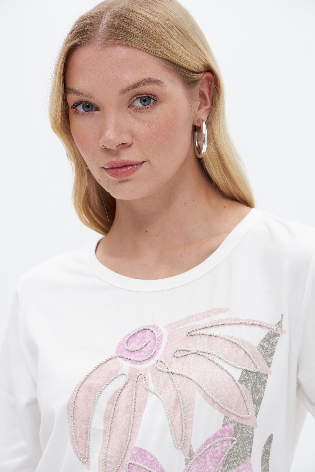 Оригинальный дизайн футболки Bianca подчеркнет вашу индивидуальность и безупречный вкус. Цветочный принт добавляет женственности и легкости в образ. Футболка станет прекрасным дополнением к вашему гардеробу.