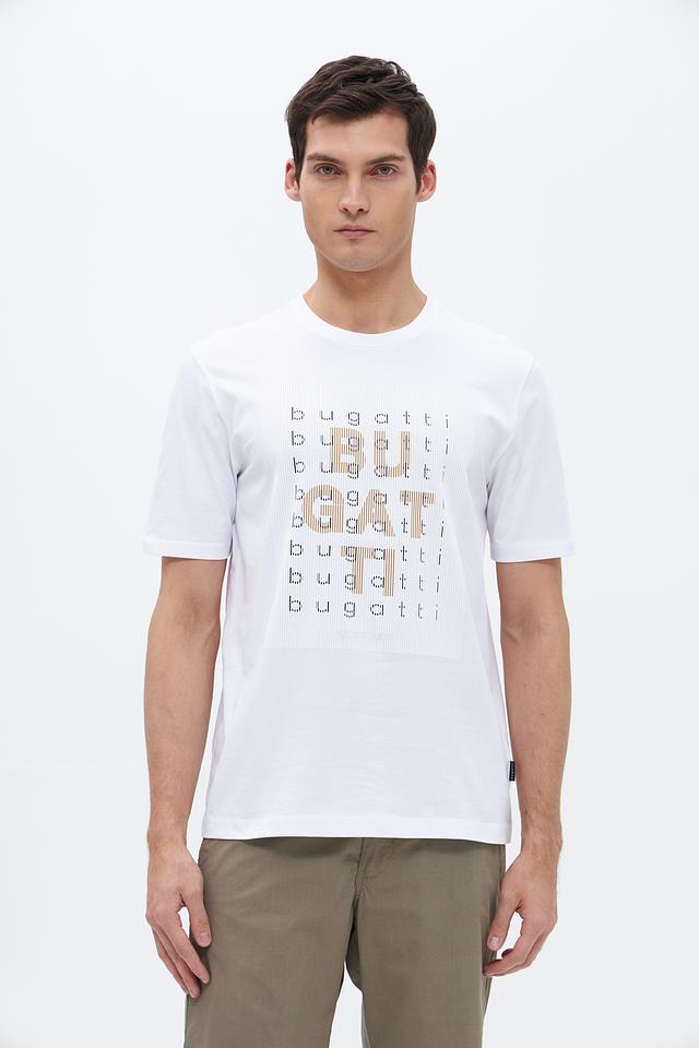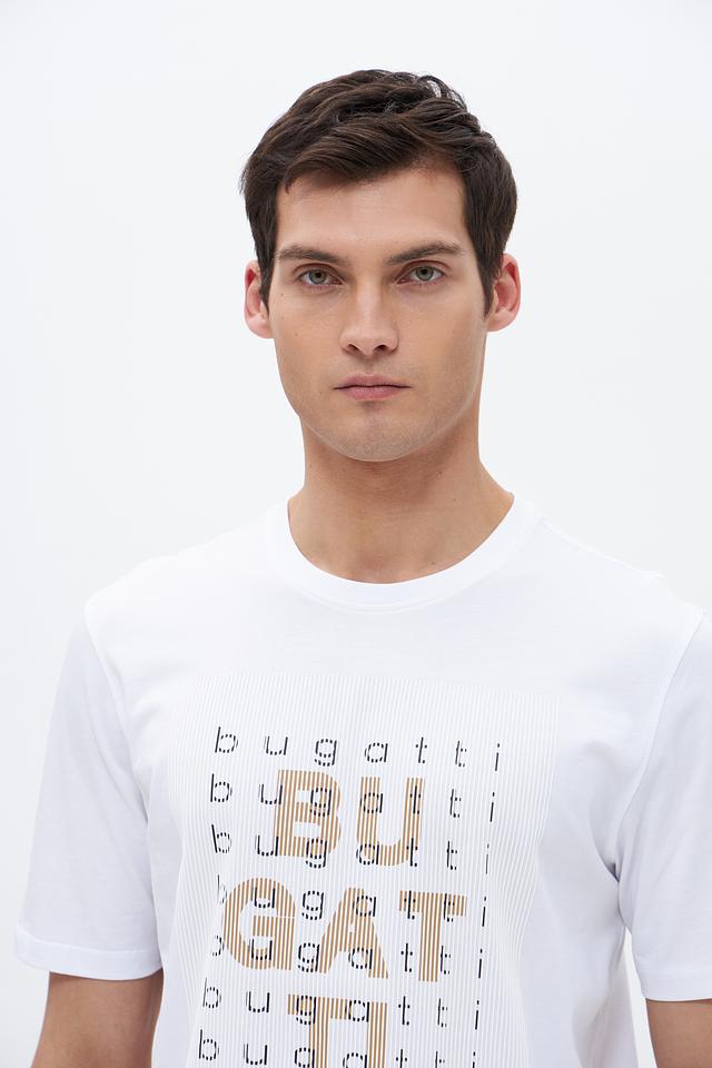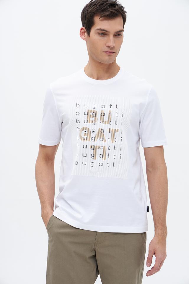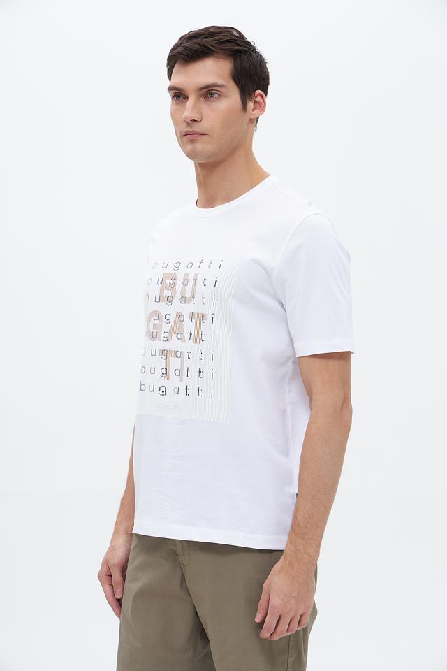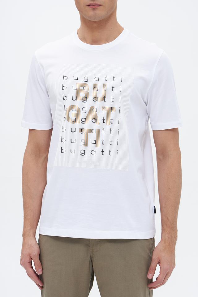Белая футболка Bugatti из 100% хлопка с оригинальным принтом логотипа бренда. Классический крой и мягкий материал обеспечивают комфорт в повседневной носке. Состав: хлопок 100%
