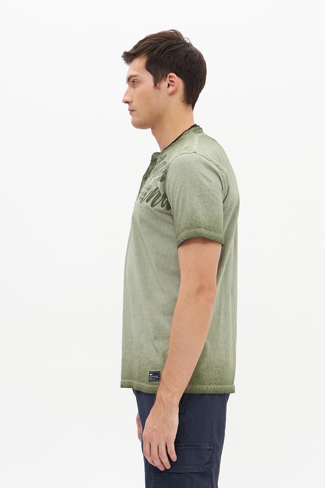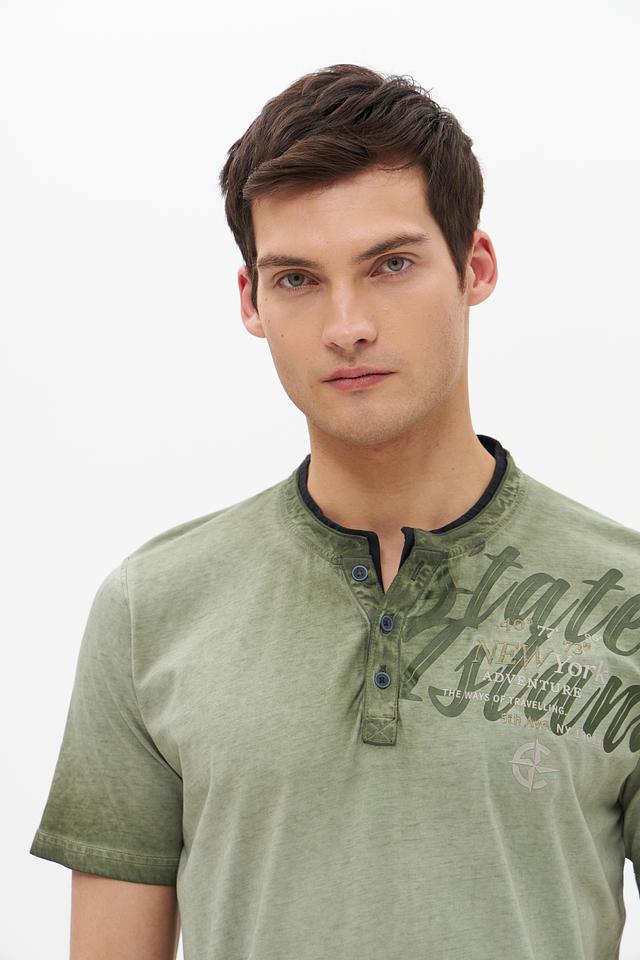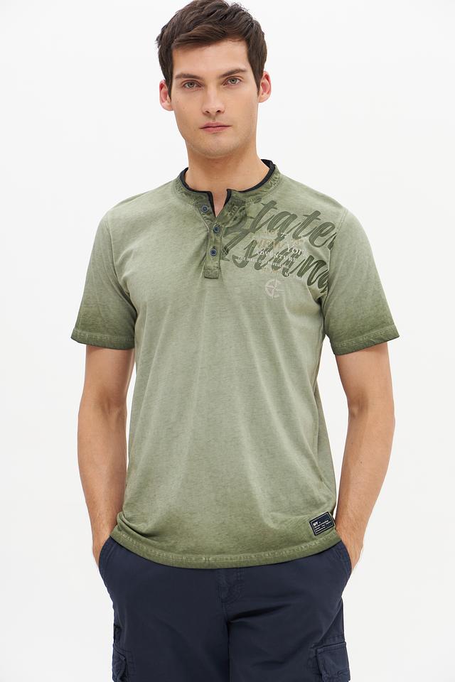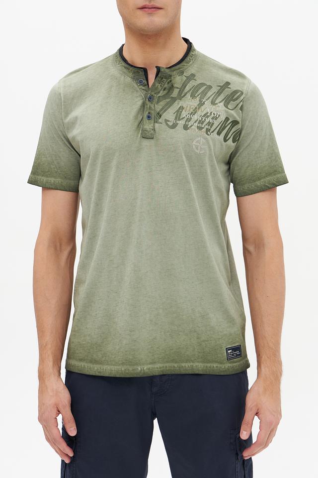 Мужская футболка Casa Moda хаки цвета с оригинальным принтом и воротником-стойкой. Изготовлена из 100% хлопка, обеспечивающего комфорт и воздухопроницаемость. Состав: хлопок 100%