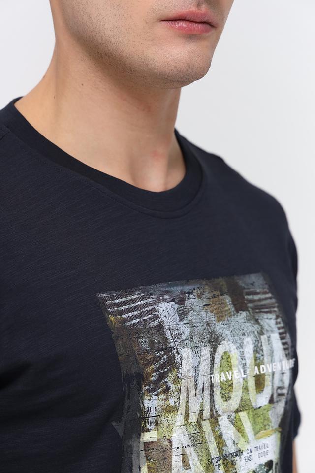 Чёрная футболка Casa Moda с оригинальным принтом на лицевой стороне. Изготовлена из 100% хлопка, обеспечивающего комфорт и воздухопроницаемость. Стильный и универсальный вариант для повседневного образа. Состав: хлопок 100%