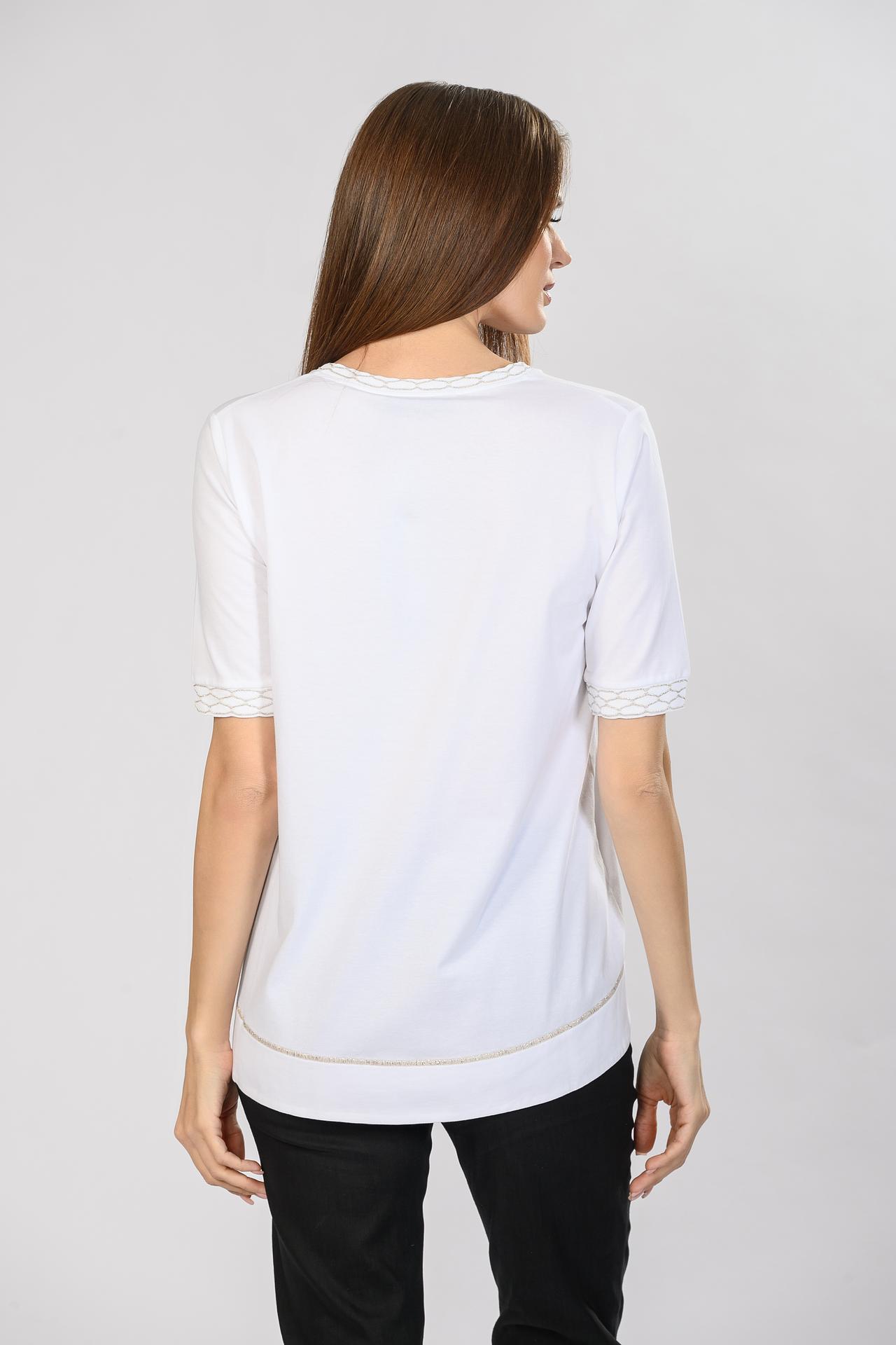 - Элегантная отделка: Декоративная отделка на рукавах и вырезе добавляет изюминку и делает эту футболку особенной.