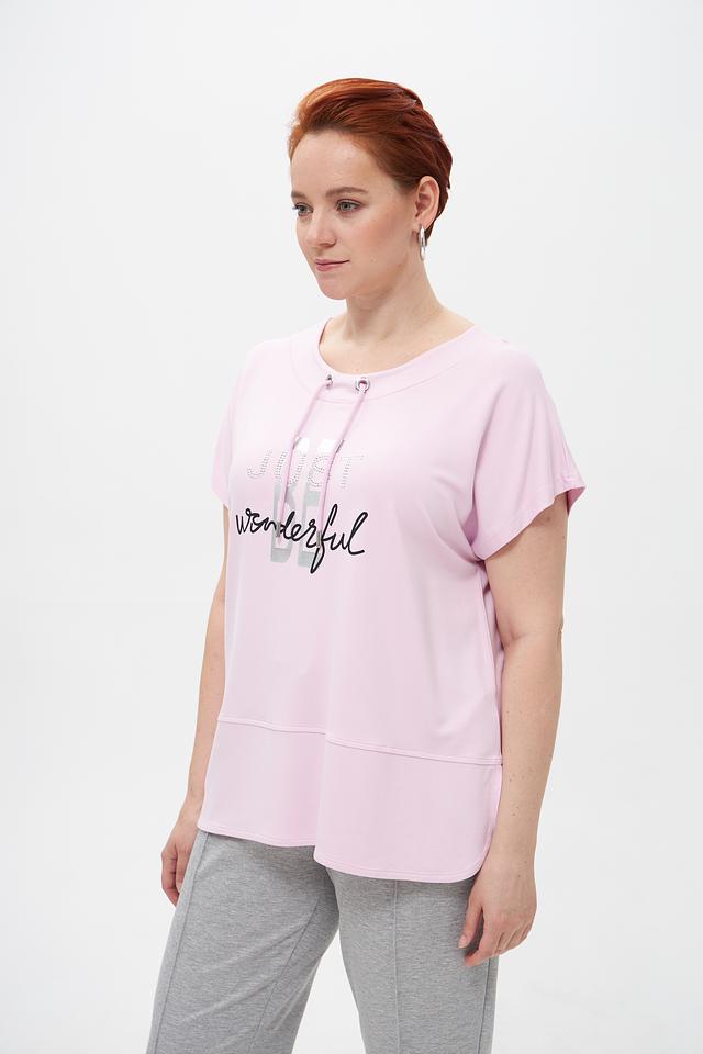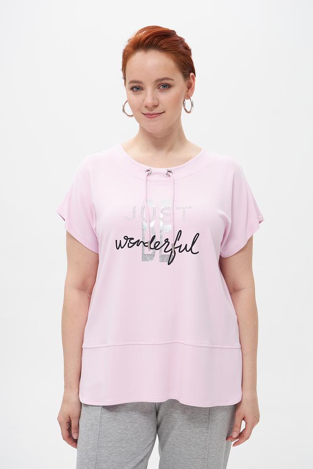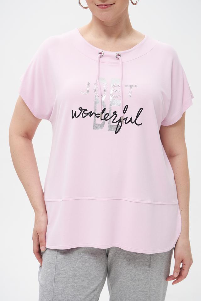Розовая футболка от Doris Streich с актуальным свободным кроем и надписью “Just Wonderful”. Изготовлена из мягкой вискозы с добавлением эластана для комфорта. Отличный выбор для создания повседневных образов. Состав: вискоза 95%, эластан 5%