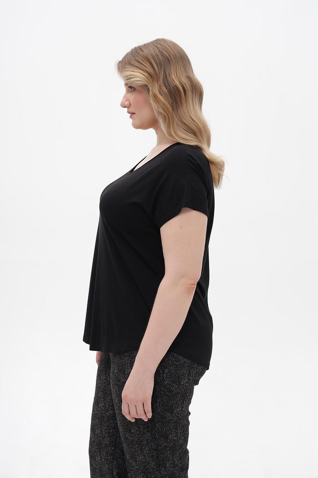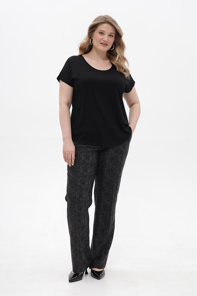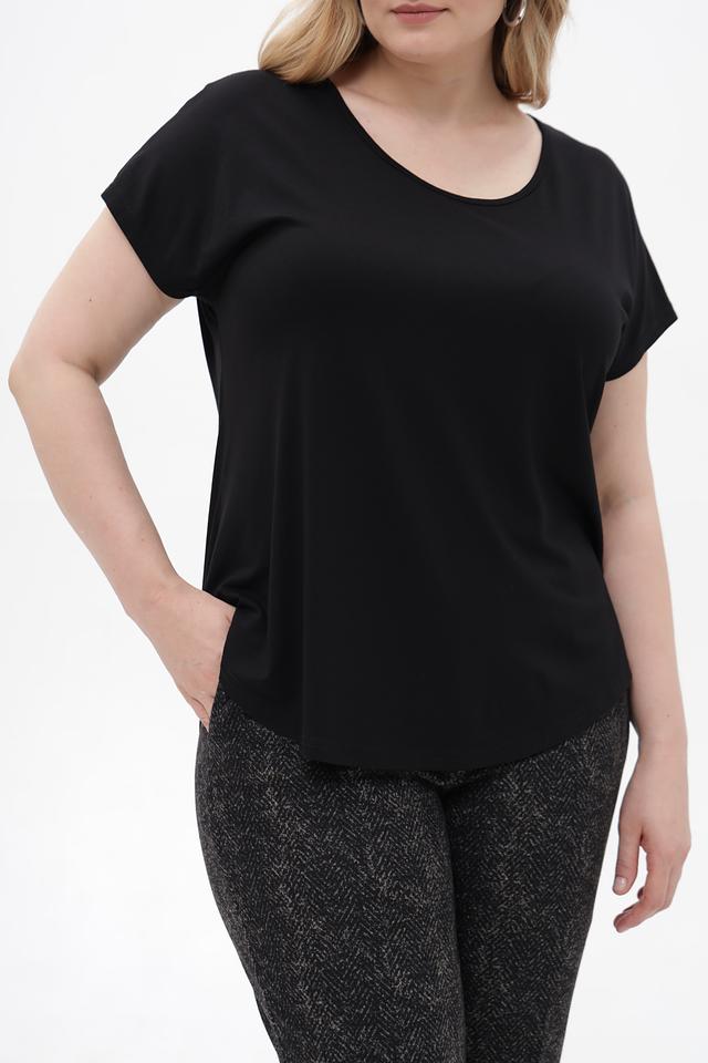 Чёрная футболка от бренда Doris Streich – это идеальный выбор для создания повседневного и комфортного образа.