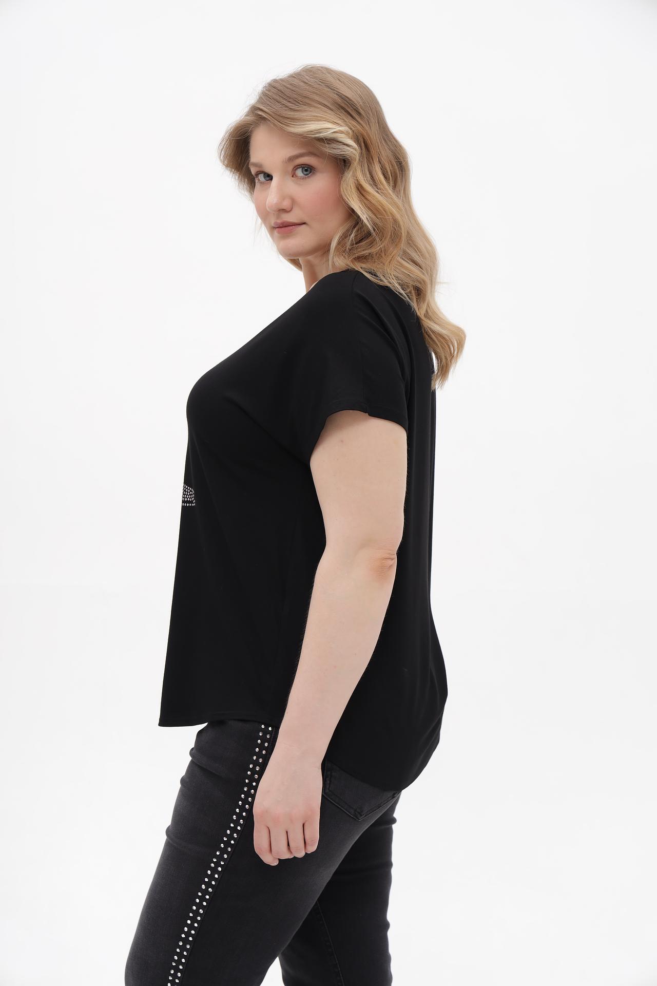 - Универсальность: Футболка легко сочетается с джинсами, юбками и брюками, создавая как повседневные, так и более нарядные образы.