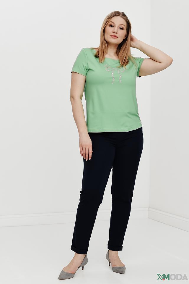 Особый акцент в этой модели – декоративный бант, выполненный из мерцающих страз. Он придает футболке изысканность и делает ее подходящей для особых случаев. Состав ткани: 93% вискоза, 7% эластан.