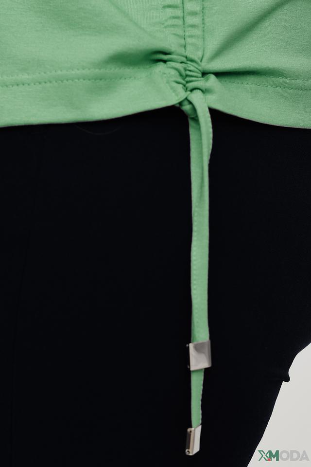 Футболка имеет прямой крой и короткие рукава, что делает ее идеальной для теплой погоды. Основной цвет – нежный лайм, который освежает образ и подчеркивает индивидуальность.