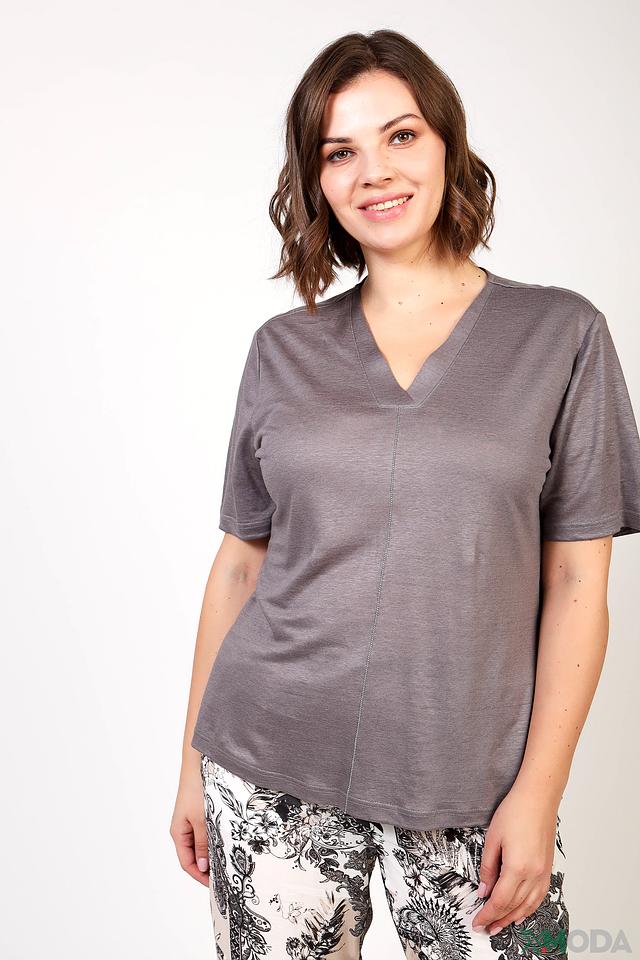 Женская футболка Frank Walder серого цвета с V-образным вырезом и короткими рукавами. Изготовлена из 100% льна, что обеспечивает комфорт и воздухопроницаемость в жаркую погоду. Стильный и лаконичный дизайн. Состав: лен 100%