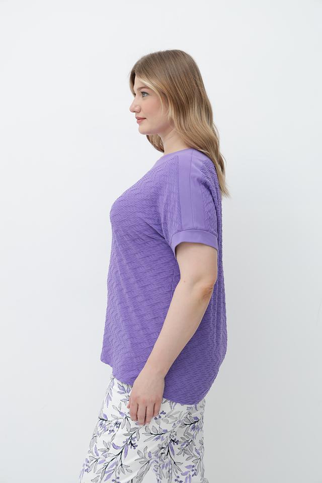 Футболка изготовлена из мягкой и приятной к телу вискозы с добавлением полиэстера и эластана, благодаря чему она хорошо держит форму и не мнется. Текстурная поверхность придает изделию оригинальность и изысканность.