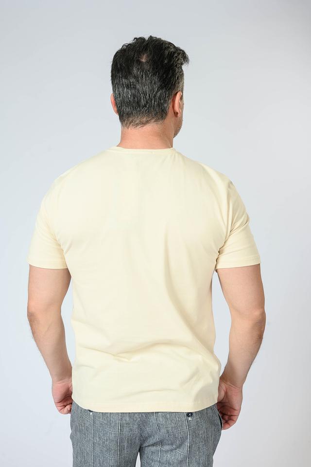 Футболка имеет классический крой, который обеспечивает комфортную посадку по фигуре. Состав ткани – 95% хлопок и 5% эластан, благодаря чему она приятна к телу, хорошо дышит и не сковывает движений.