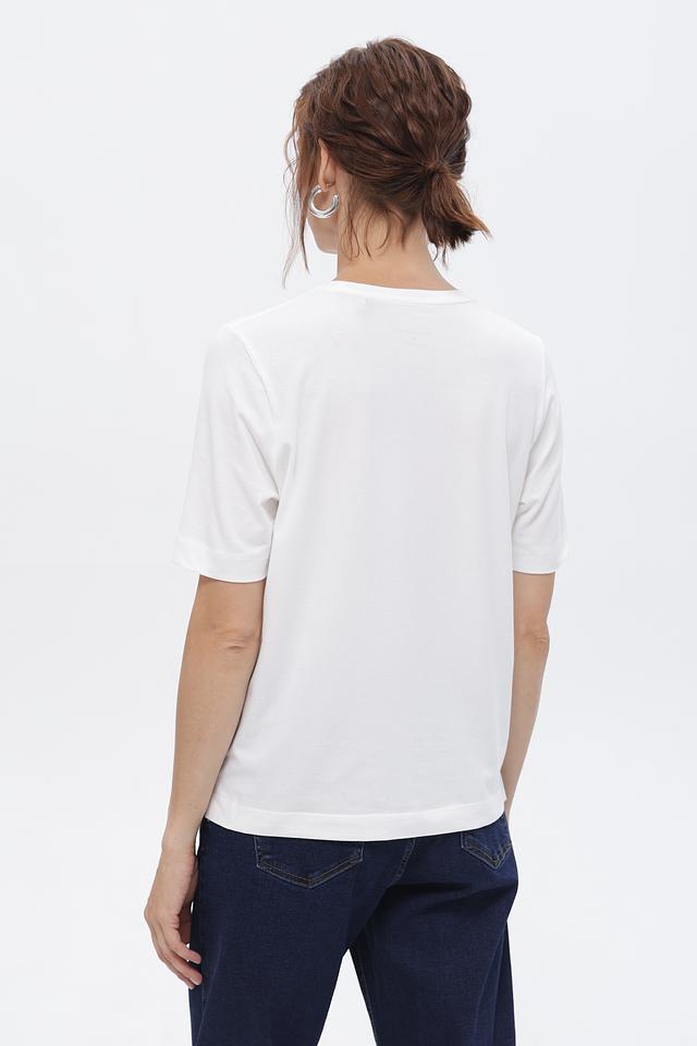 Эта футболка идеально сочетается с джинсами, брюками или юбками, позволяя создавать разнообразные стильные образы.