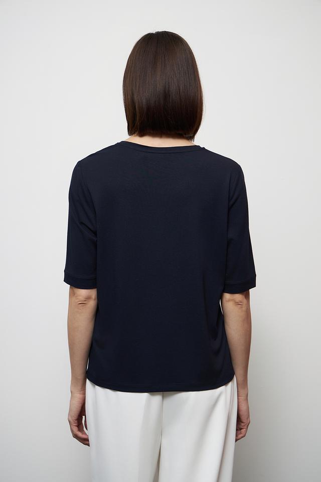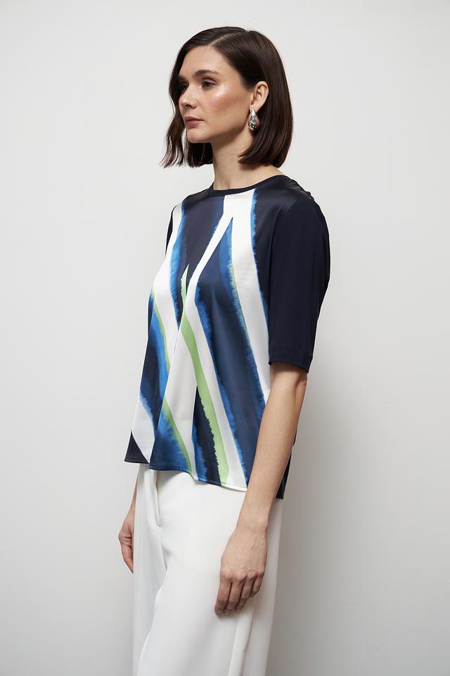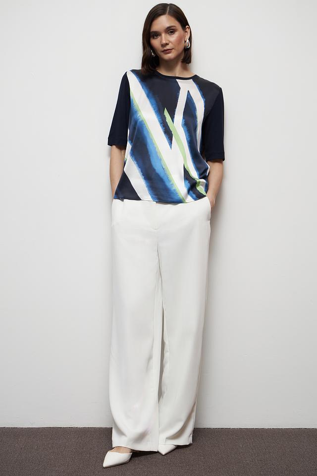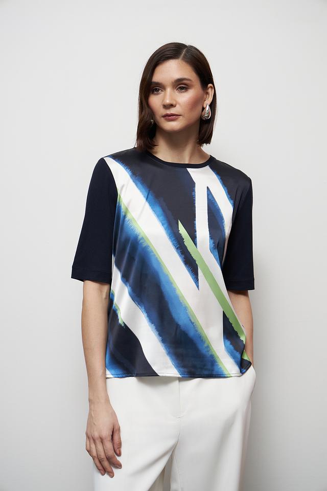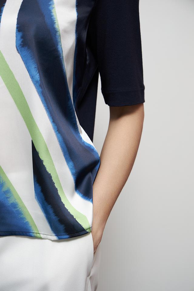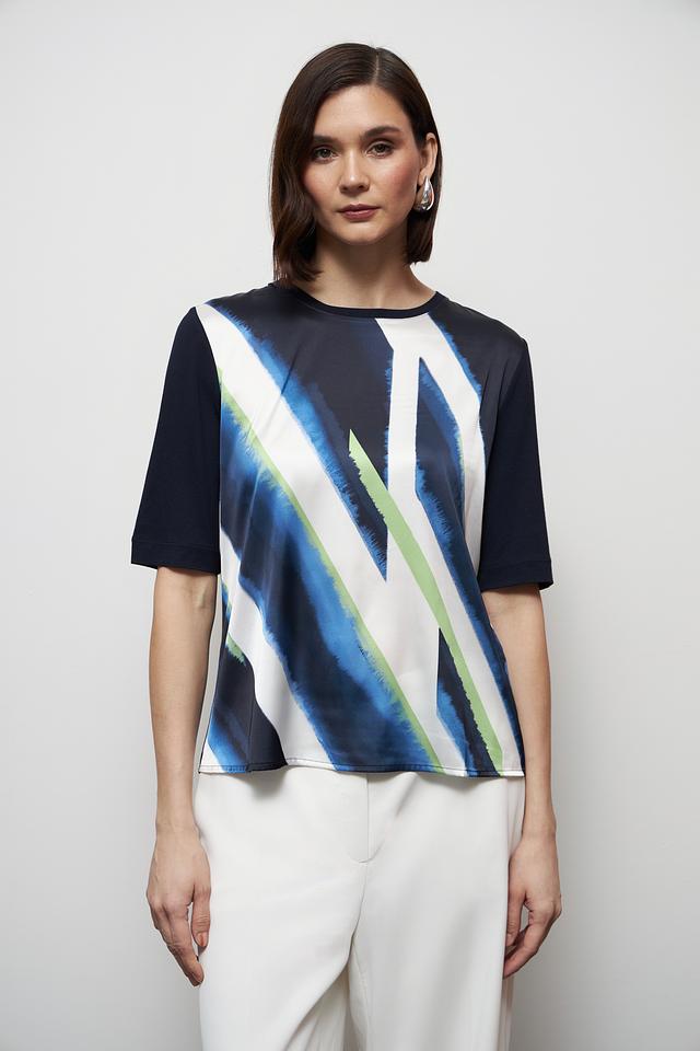 Женская футболка Gerry Weber темно-синего цвета с ярким абстрактным принтом. Изготовлена из мягкой вискозы с добавлением эластана для комфорта и свободы движений. Состав: вискоза 95%, эластан 5%