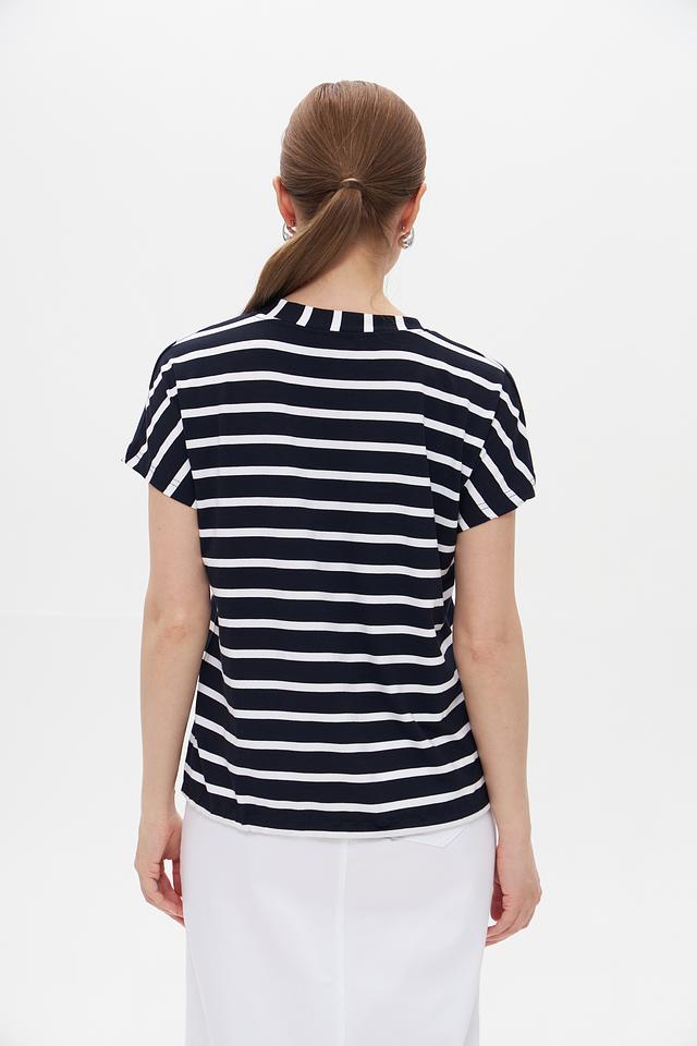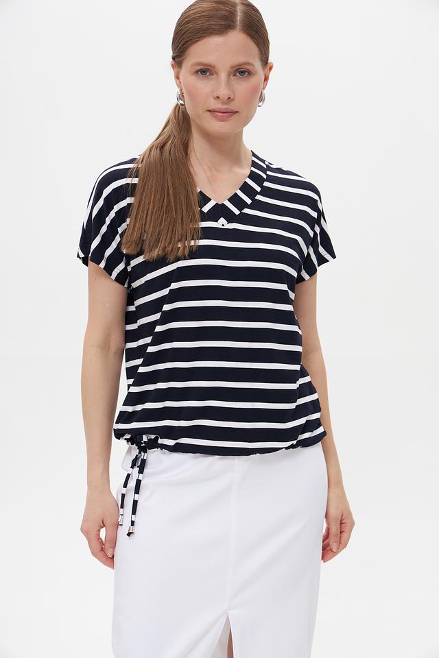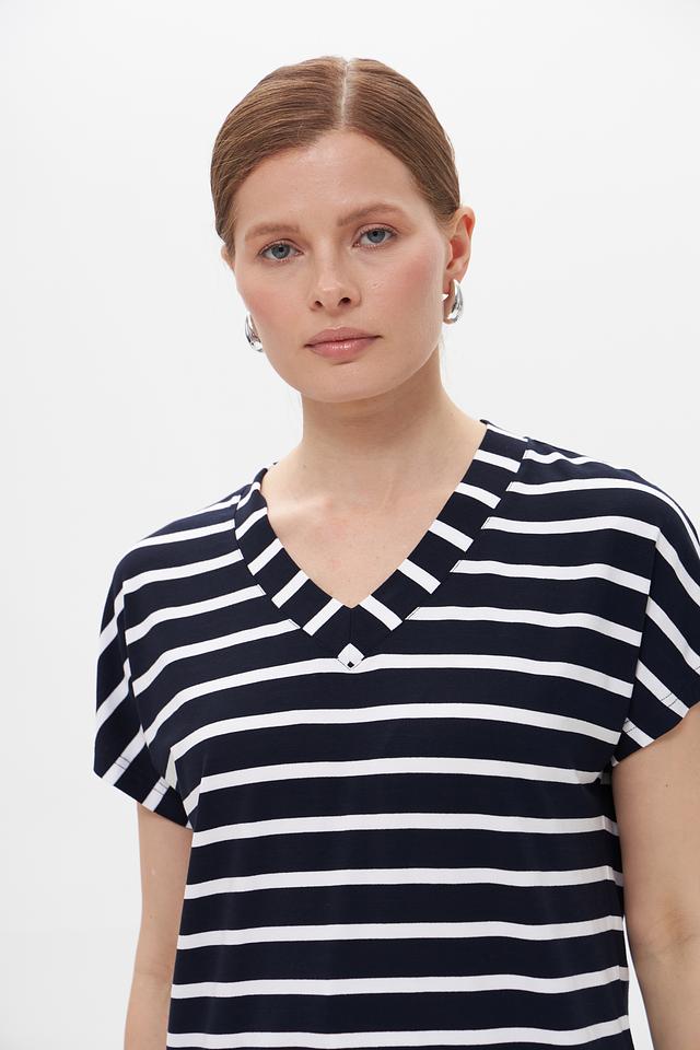 Стильная футболка Gollehaug синего цвета с классическим полосатым принтом. Изготовлена из мягкой вискозы с добавлением эластана для комфорта и хорошей посадки. Состав: вискоза 95%, эластан 5%