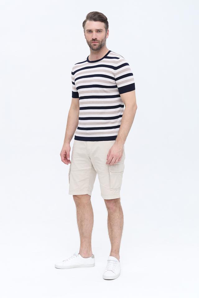 Мужская футболка Gran Sasso в классическую полоску синего и бежевого цвета. Изготовлена из 100% хлопка, обеспечивающего комфорт и воздухопроницаемость. Стильный и универсальный вариант для повседневного гардероба. Состав: хлопок 100%