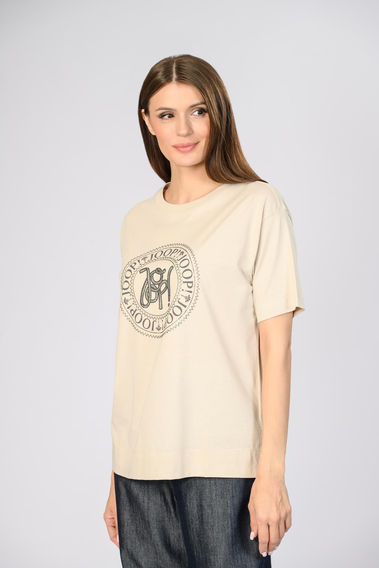 Футболка Joop! бежевая с принтом и металлической эмблемой