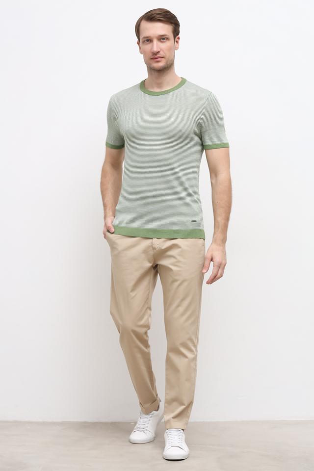 Мужская футболка Joop! зелёного цвета с классическим полосатым рисунком. Изготовлена из сочетания льна, полиэстера и хлопка, обеспечивая комфорт и воздухопроницаемость. Идеальный выбор для создания стильного повседневного образа. Состав: лен 45%, полиэстер 39%, хлопок 16%