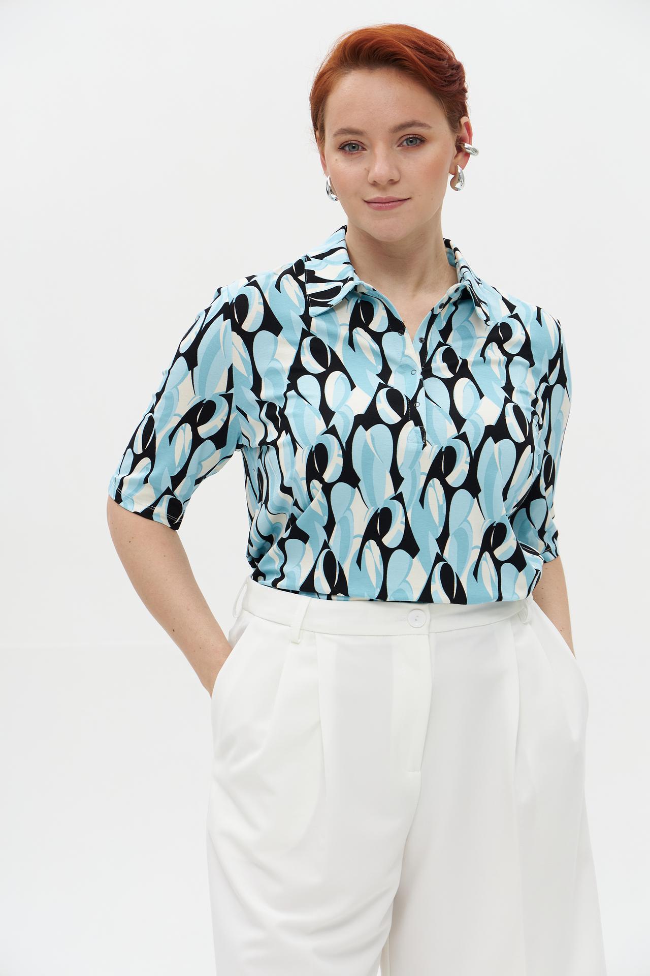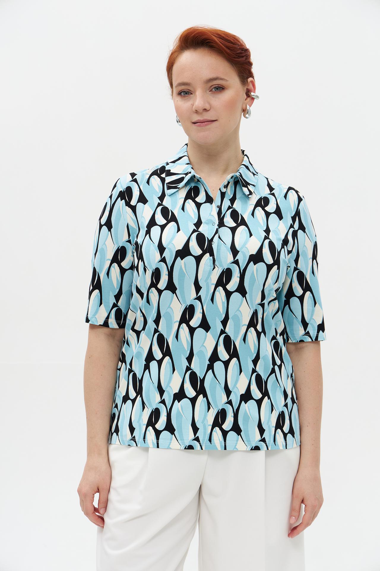 Футболка Lebek с абстрактным принтом, голубой, короткий рукав