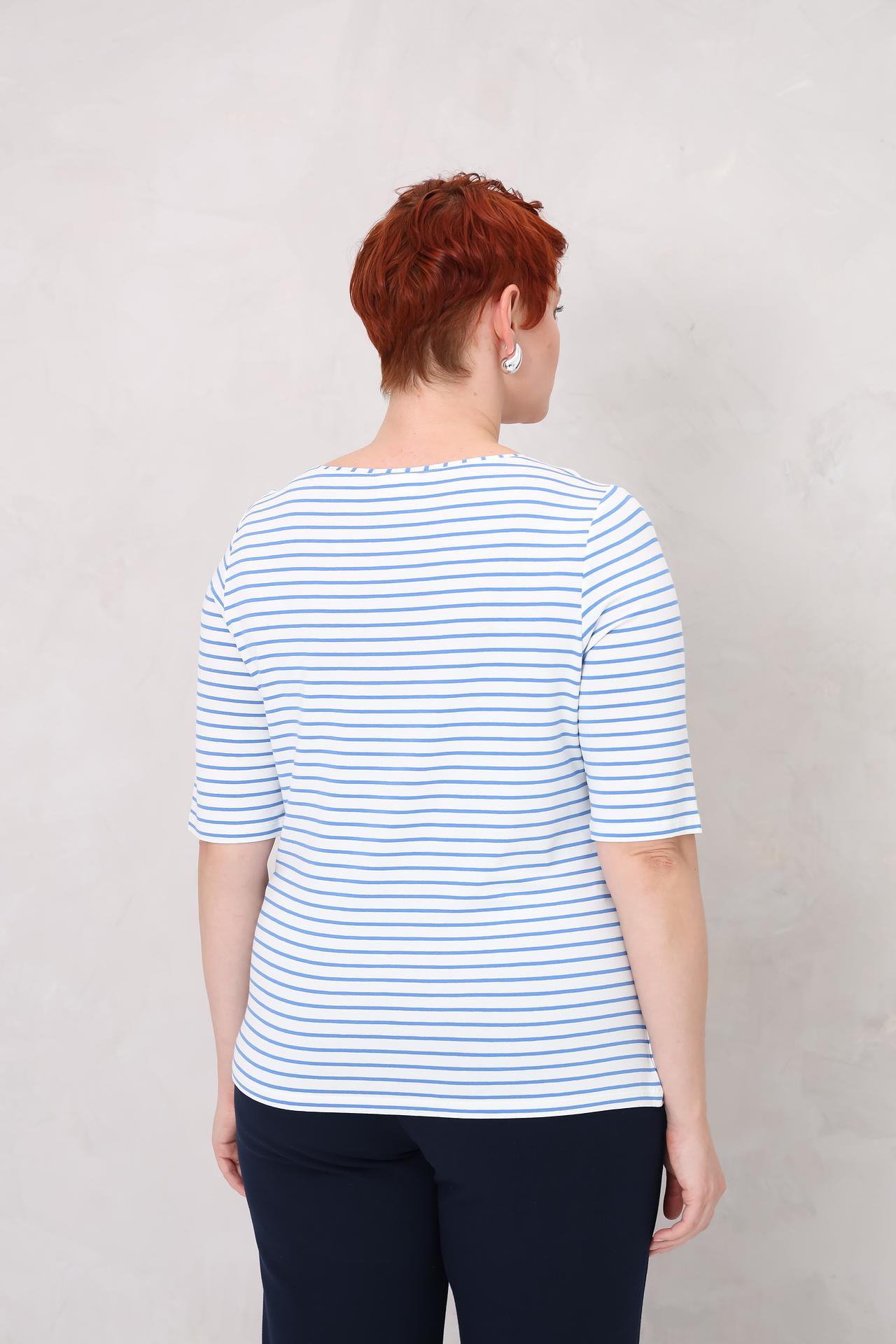 Футболка Lebek выполнена из высококачественной ткани, состоящей из 8% эластана и 92% вискозы, что обеспечивает мягкость, эластичность и приятные тактильные ощущения. Вискоза придает ткани легкость и воздухопроницаемость, а эластан гарантирует отличную посадку по фигуре и свободу движений. Голубая футболка в полоску станет прекрасным выбором на каждый день. Она подходит для работы, прогулок, встреч с друзьями и других случаев.