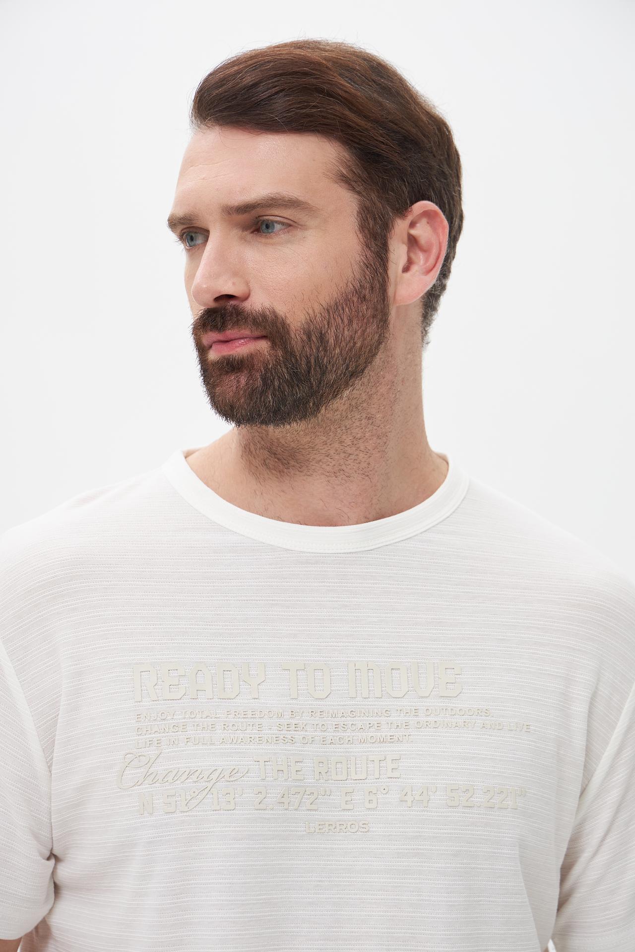 Оцените комфорт и стиль с нашей новой футболкой Lerros. Изготовленная из 100% хлопка, она идеально подходит для повседневной носки, обеспечивая мягкость и воздухопроницаемость. Ткань с легкой полоской придает изделию оригинальность, а декоративная надпись делает ее еще более привлекательной.