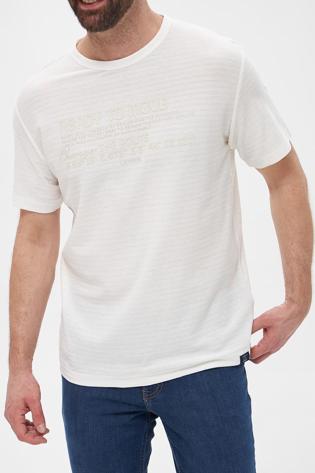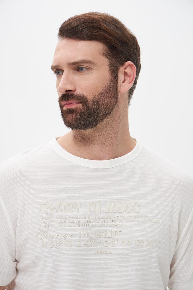 Белая футболка Lerros с фактурной текстурой и принтом на груди. Изготовлена из 100% хлопка, обеспечивающего комфорт и воздухопроницаемость. Стильный и универсальный вариант для повседневного образа. Состав: хлопок 100%