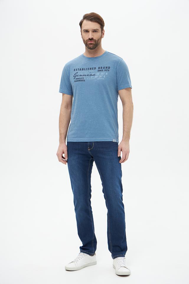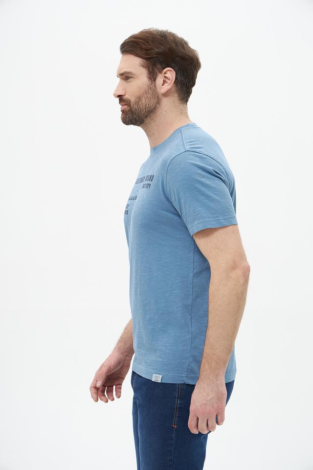 На передней части футболки расположен оригинальный принт с надписями и географическими координатами, придающий ей индивидуальность. Классический крой и короткий рукав обеспечивают свободу движений.