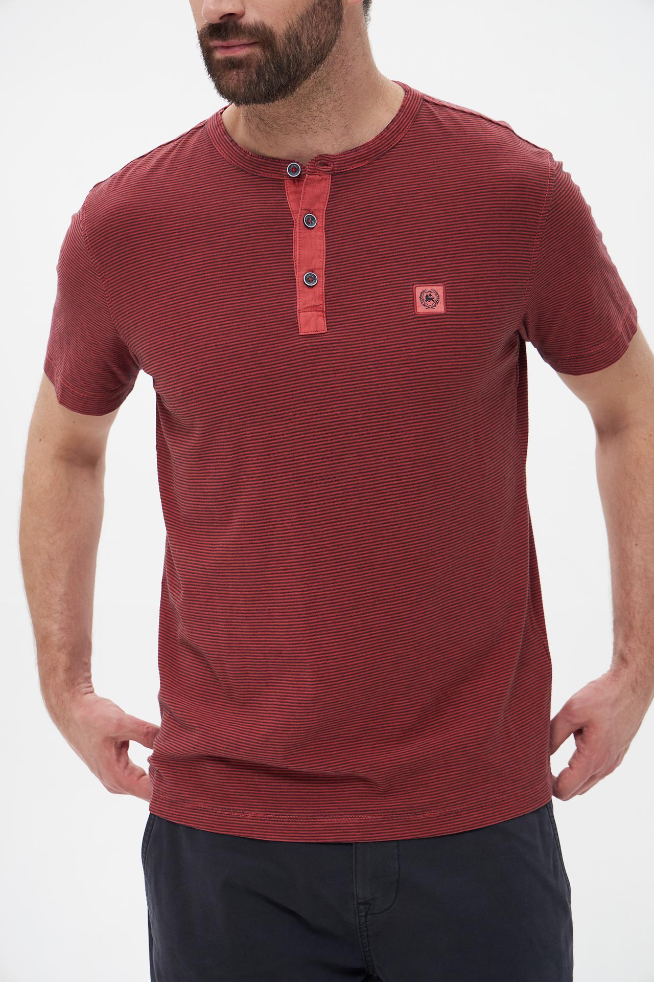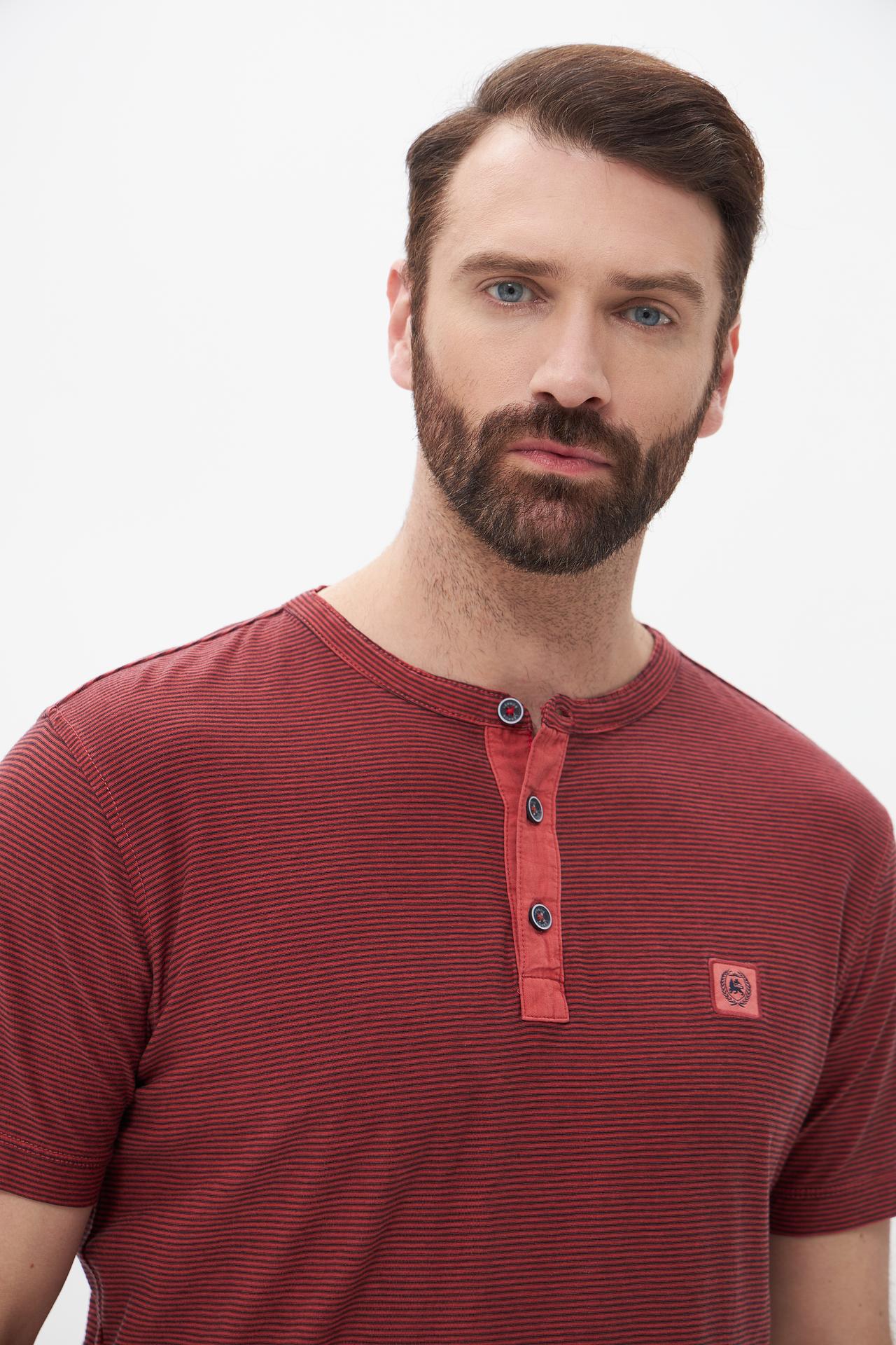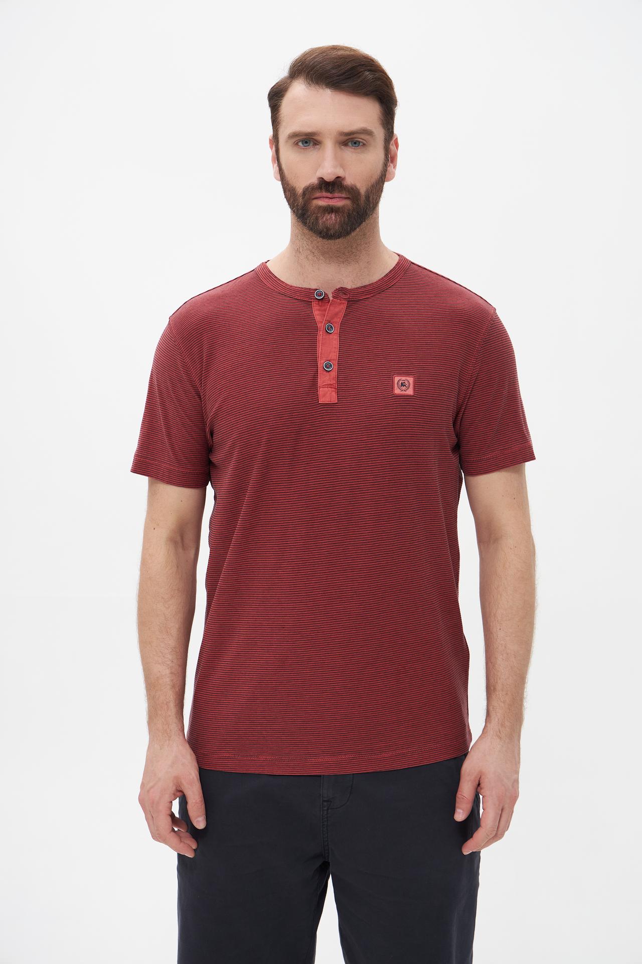 Футболка Lerros мужская в полоску, бордовая с пуговицами