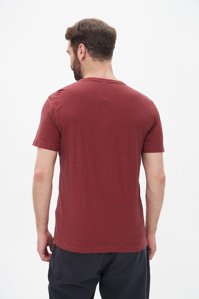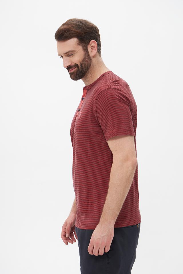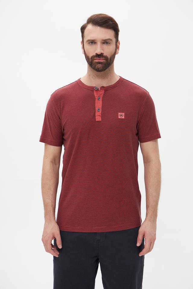 Мужская футболка Lerros бордового цвета с коротким рукавом и полосатым рисунком. Изготовлена из 100% хлопка, обеспечивающего комфорт и воздухопроницаемость. Удобная модель с планкой на пуговицах. Состав: хлопок 100%