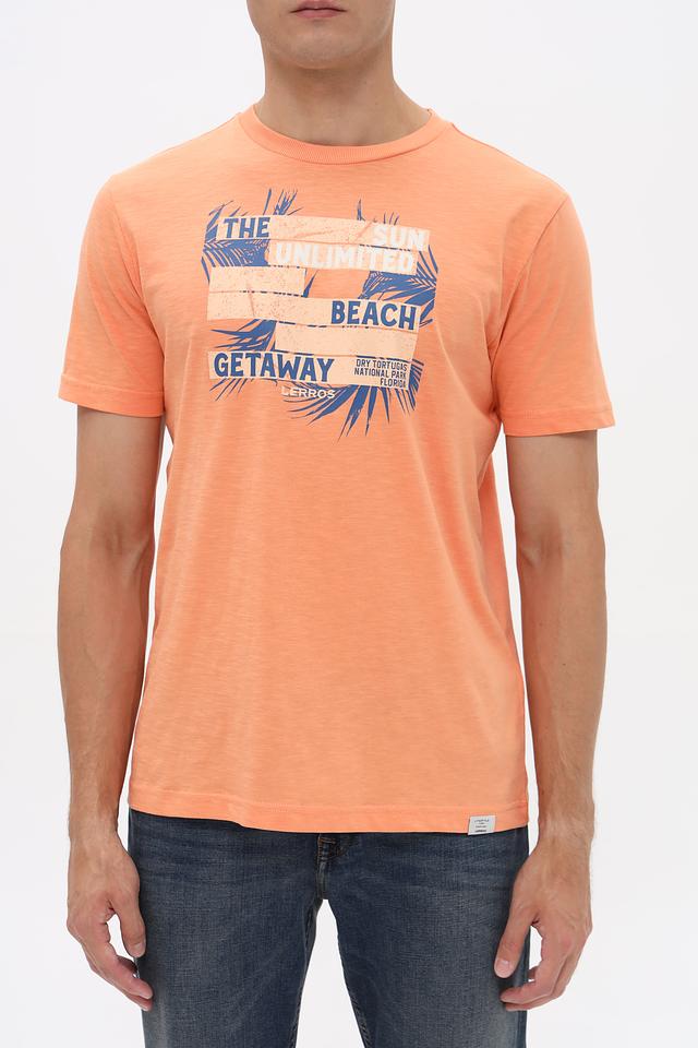 Оранжевая футболка Lerros с ярким принтом в пляжном стиле. Изготовлена из 100% хлопка, обеспечивающего комфорт и воздухопроницаемость. Отличный выбор для повседневного образа. Состав: хлопок 100%
